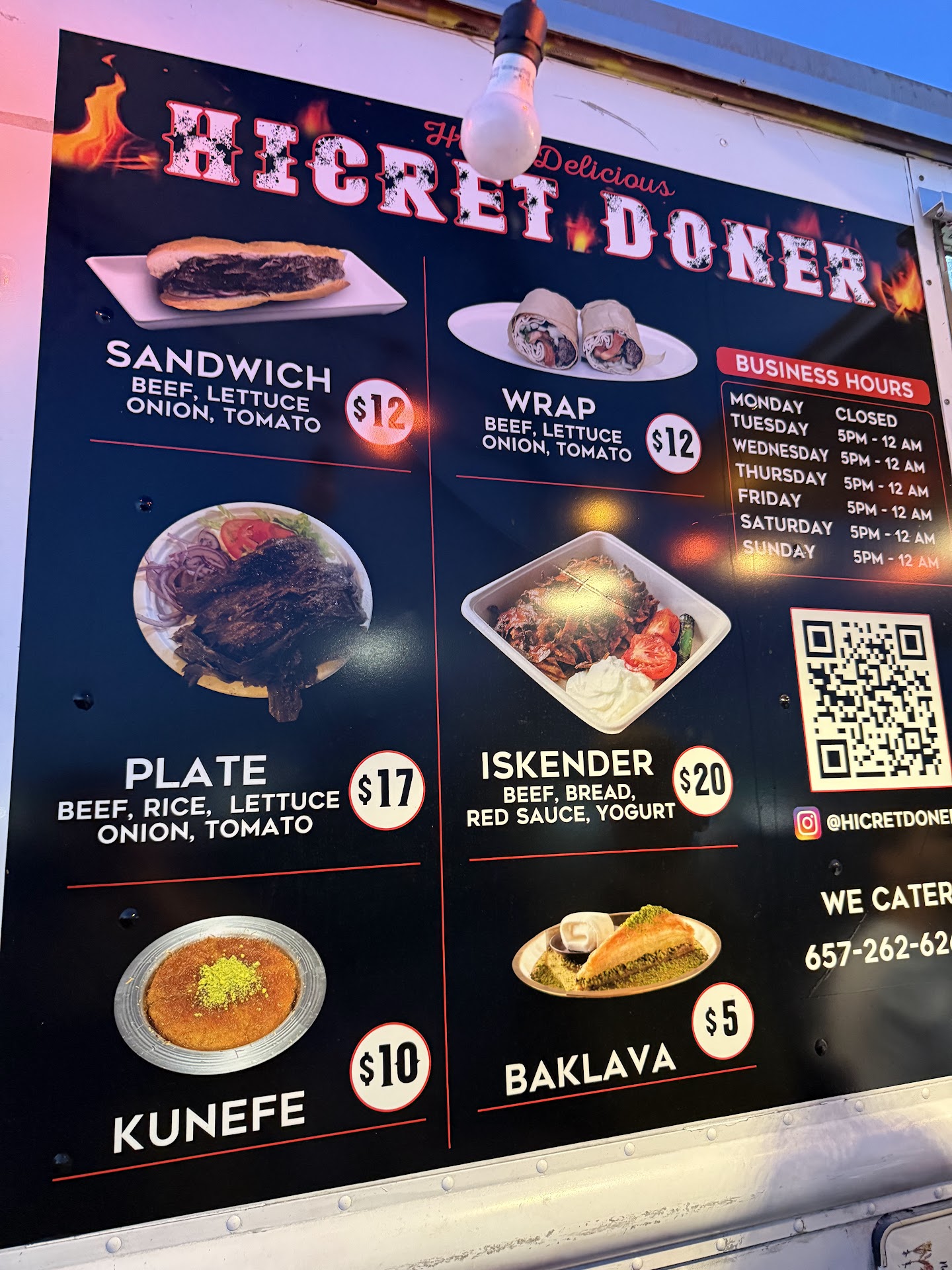 Read moreI recently had the pleasure of visiting this doner (shawarma) truck and the experience was absolutely delightful! The dishes were authentic and flavorful, staying true to traditional recipe. I tried this beef doner and was blown away by the richness how well-balanced the flavors were. The staffs were friendly and welcoming. Even though there was a line, the service was quick and efficient. Itâs clear they care about their customers, making the experience even more enjoyable. The portions were generous, and the prices were fair, especially considering the quality and freshness of the food. Itâs rare to find real doner ( shawarma) If youâre looking for a taste of authentic, traditional cuisine on the go, this food truck is a must-visit. Whether youâre a fan of street food or simply want to explore new flavors, this truck offers an experience worth coming back for! Highly...