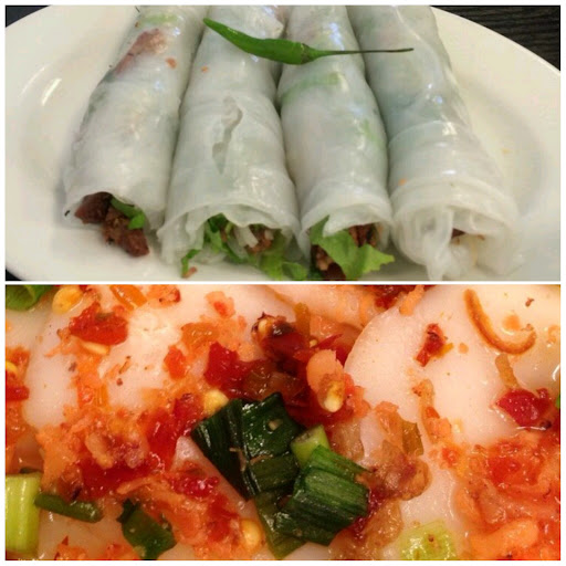 A week before we order food for our party, we came here and bought small amount of multiple items to try them out. The nem cuon was good as the crunchy tofu inside was really crunchy. The so called Tom hoa tien was horrible. The egg rolls wasn't good enough for our party. The bo la lach wasn't that good either. Banh loc la was good. We really like it!