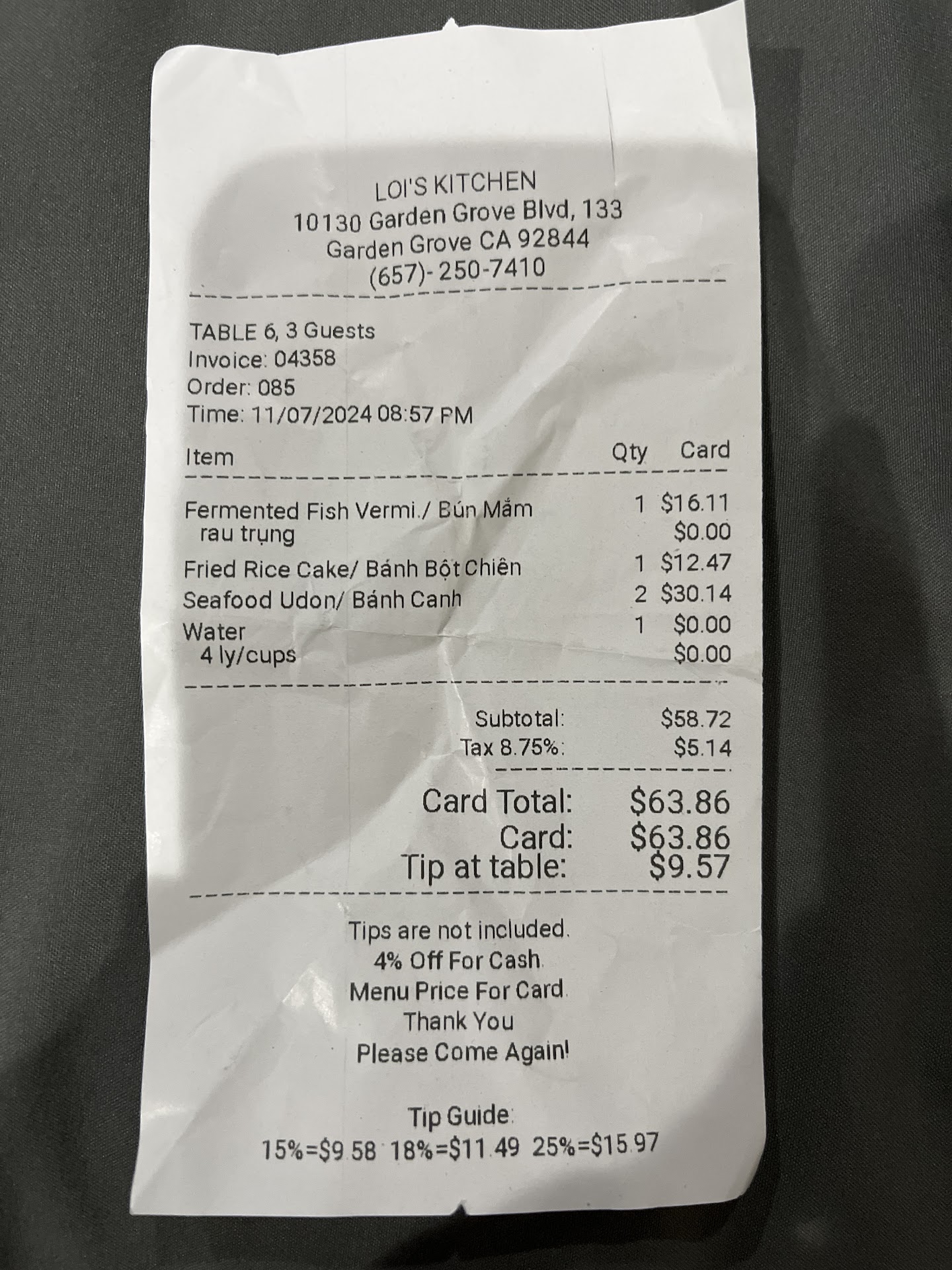 I hesitated coming here once I saw that they give away things for 5 star reviews on Yelp because I don’t trust restaurants that bribe customers. There are bad reviews on Yelp. I normally get wonton soup at Brodard Chateau which isn’t bad. I’m not coming back here or recommending this place and am angry I wasted money on...