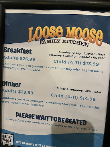 Read moreWhile obviously not haute cuisine or going to be picking up a Michelin star any time soon, for an all-you-can eat buffet inside of a children's themed resort, Loose Moose Family Kitchen is actually very decent and, at about $27 per adult (and with kids under 4 years-old eating free), quite reasonably priced. The made-to-order pasta station is a tasty option and most of the buffet items were solid, particularly if you target the ones that were brought out most recently. Haters gonna hate, and a buffet in a theme park is an easy target, but for what this is it deserves 5 stars out of 5. We ate here twice, and I'll eat here again without hesitation the next time we stay at...