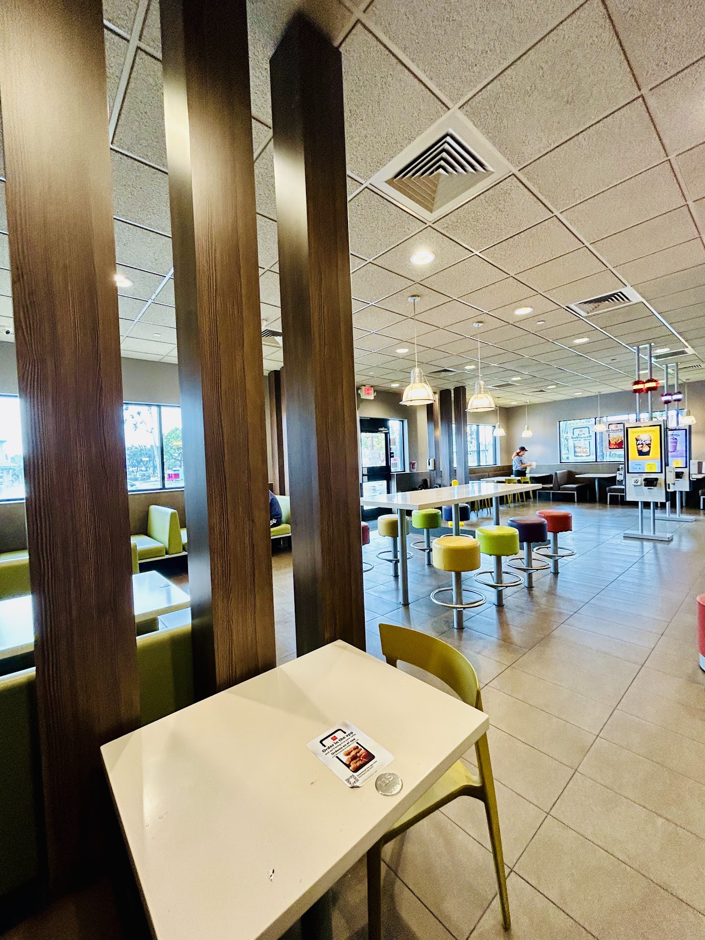 Read moreWhy do we all complain about the to many establishments. For example this McDonald's just recently went through a completely new remodel and the place looks amazing. Always clean, seating is always available especially that new table that lights when you touch it, kind if cool actually. They installed computer cashiers to place your order (by the way use it when you can) never having to deal with the cashier who is always moving at a glacier speed that I think to this date Titanic would have survived. Never smiles never engages with anyone really. So why do we get mad at them. I once got there a little to early and ordered my usual and watched what was going on. The cashier had an attitude or was just sitting there looking for something to do. Yes the cashier could have engaged with other people in line but they just sat there like Wynona Ryder (Mermaids) waiting for the bus driver to talk to her. I look over and i see every associate working the orders as fast as they can. They were more focused on the drive through that those guest still had to wait same amount of time as if they had gone inside. Never once did a manager say Hey team we are doing great, or acknowledging the cashier how they are doin. NOT ONCE DID THE MANAGEMENT TEAM ENGAGE OR TRULY INTERACT WITH STAFF OR THE GUEST. They are so busy trying to look like they can do it. Guess what, last time I checked i do believe the word team best describes this