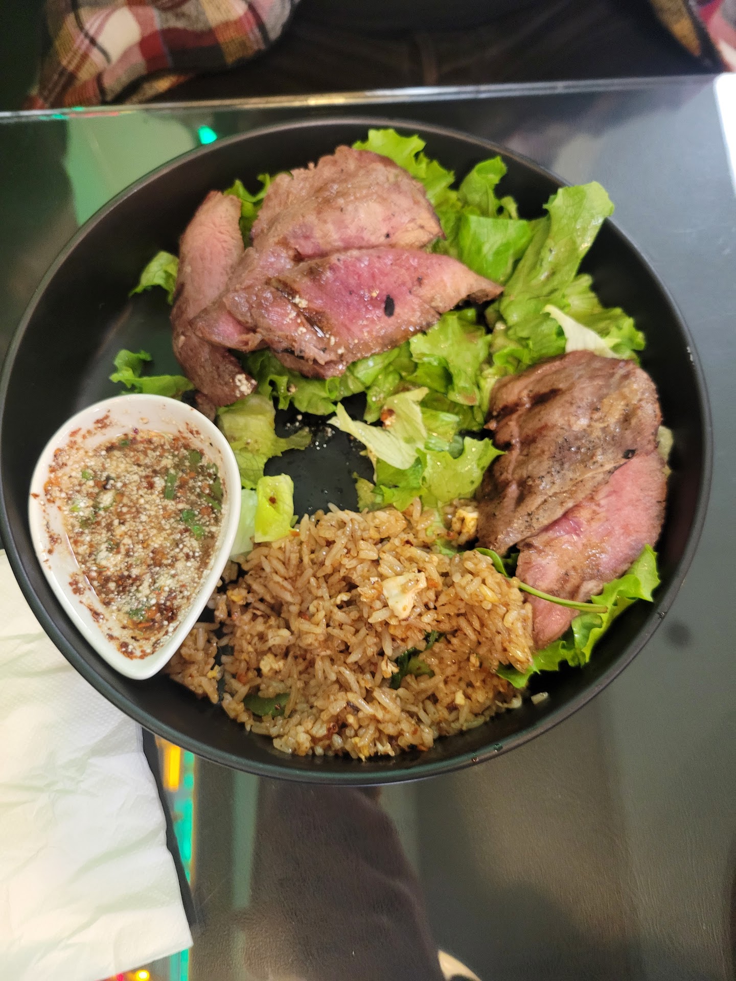 My friend ordered the won ton soup, while I had the crab fried rice and a Thai tea. The food was bland and lacked any real flavorāa stark contrast to the bold and aromatic dishes I usually associate with Thai cuisine. On top of that, the food arrived lukewarm, making me wonder if it was pre-cooked and simply reheated rather than freshly made. The only condiment provided was chili, which wasnāt enough to enhance the flavors. Some soy sauce, vinegar, or oils could have helped, but none were offered.