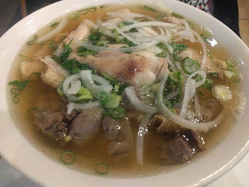Food: I don't really feel like pho ga was really half off. I would never pay $11+ for pho but $5-$6 seems about right. Also I highly recommend getting the large size which is way bigger than most average pho places. I find the broth for the pho ga to be a tad on the sweet side but is by no means bad. You get plenty of meat in your bowl and the white meat is not dry. The real gem is the liver. I typically avoid liver since it tends to taste too metallic and irony. However, the liver here tastes really clean and has a light flavor. Plus it's not over cooked at all, nor was it too soft. It gives a delightful extra texture to the dish.