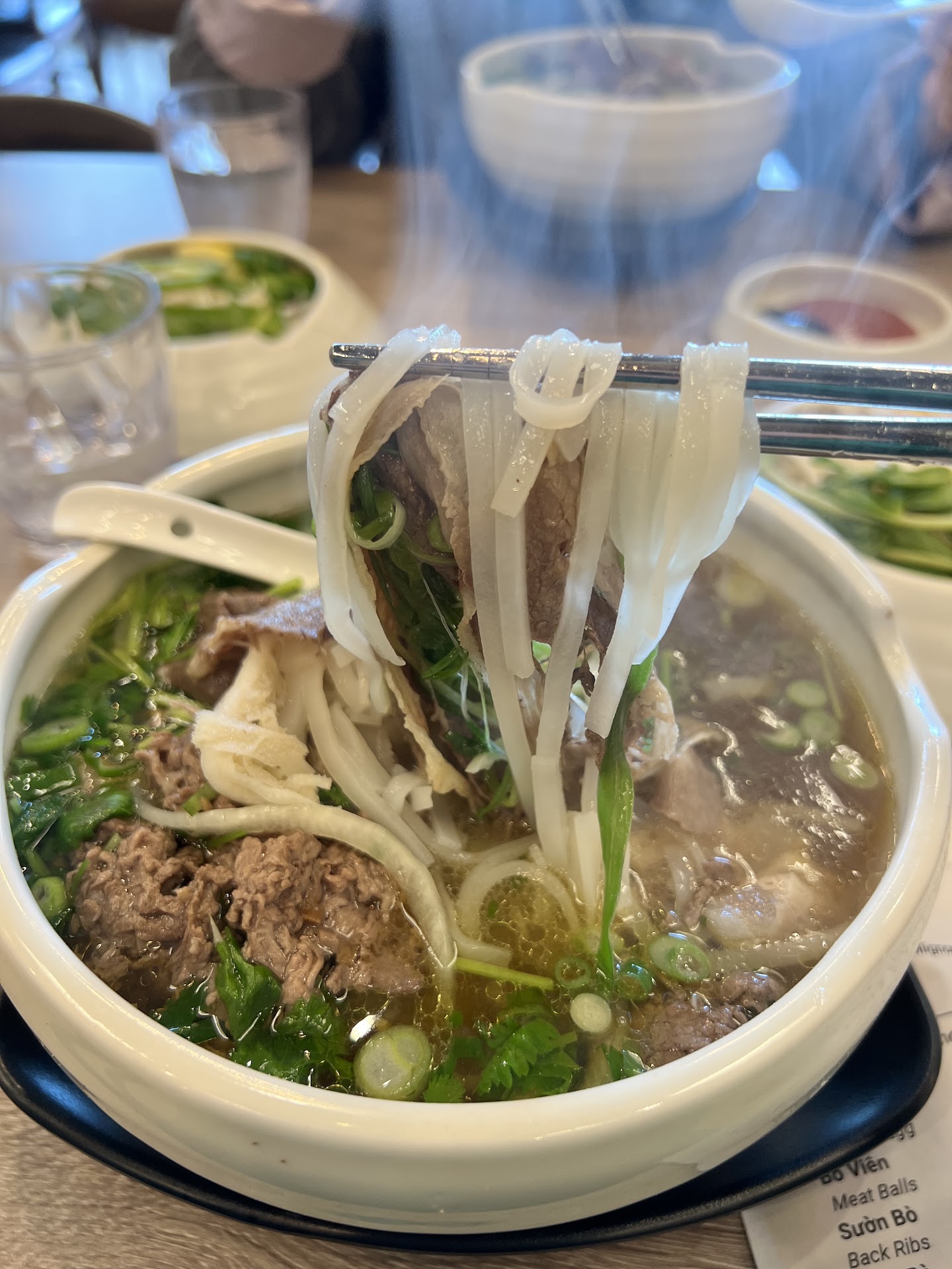 When I asked about my beef pho, I realized he had never placed my order at all, even though I had repeated it. He then called someone from the kitchen who was extremely rude, claiming the waiter had explained that the ribs were only a side dish and didn’t include noodles yet he wasn’t even the one who took our order. He also told us the kitchen was closed and the soup was already poured out, so they couldn’t make anything else.