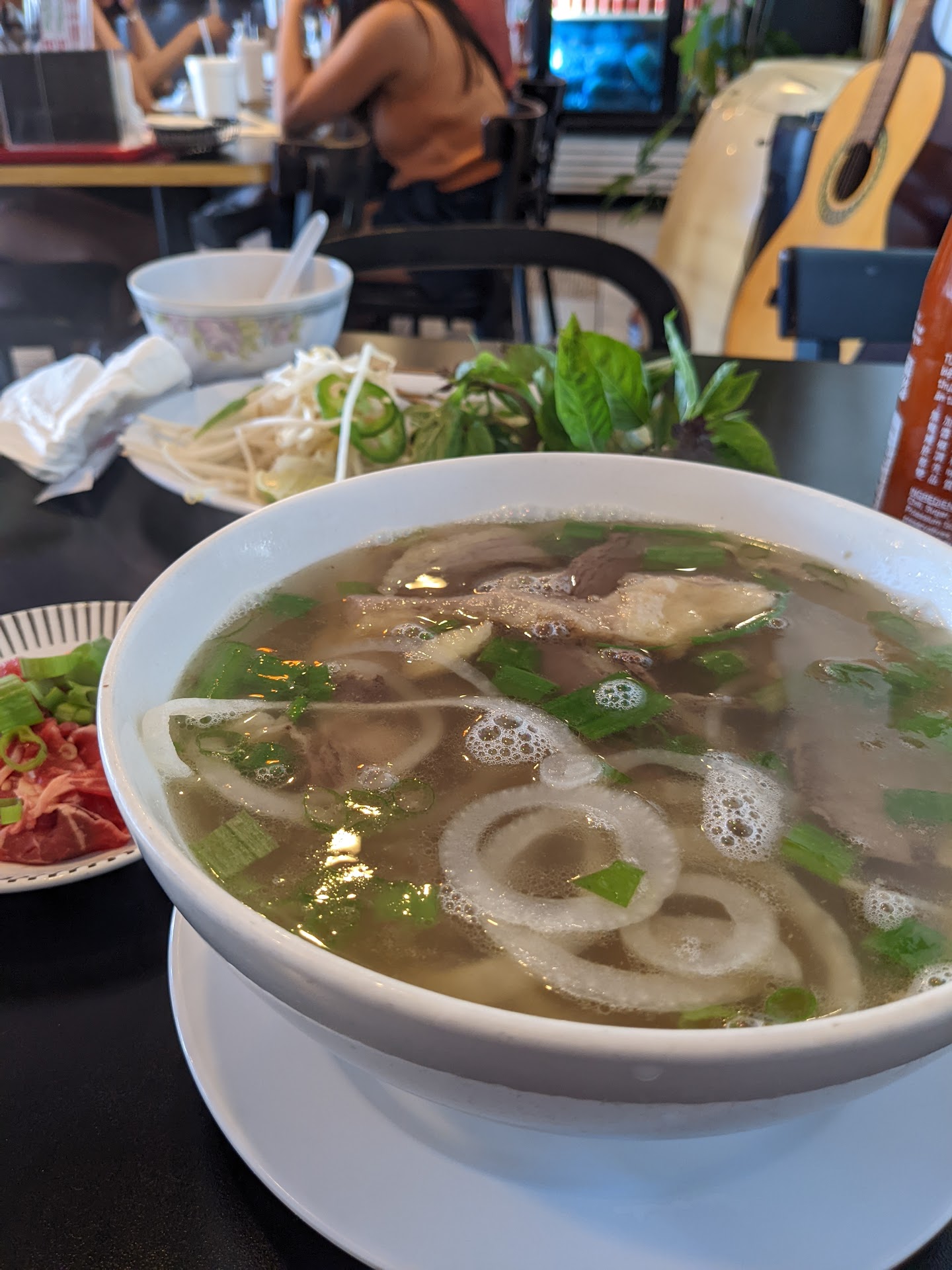 Read moreOur quest to find a good place for Pho. Was recommended to this place and it was on the spot. Before you enter the place, the fragrant can be experienced right in front. Outdoor and indoor seating available plenty of parking space the restaurant opened late. We ordered the special bowl which have all cuts of meat except my favorites of tendon and tripe slices. The broth is full of flavor, the broth filled to the rim and amble cuts of meat in the bowl. Not to mention the necessary condiments come with this. Bean sprouts, Thai basil, Chinese parsley and Vietnamese parsley which looks like thyme leaves and picked sliced onions. The only slide back is the siracha chili comes in an individual pancakes rather than the famous HUY Fong red and green nozzle bottle. Very efficient services, grab your table and select your favor bowl’s concoctions by number and enjoy. Plenty of table to accommodate even...