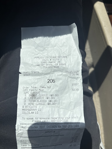 Read moreThe A.I. Drive Thru is HORRIBLE. It is weird and does not even get orders right. It is a horrible idea. There are some places where A.I..Is NOT APPROPRIATE at all, and one of them is with serving food. But, if you have ever tried chatting with eBay customer service online, then I guess you will like having an equally useless time wasting experience ordering food at this Popeyes.
