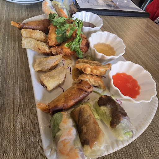 Food: We ordered the Bistrotâs Combination Rice Platter with grilled shrimp and pork, the Combination Vermicelli Noodles with grilled shrimp and chicken, and the Bistrotâs Sampler (wings, potstickers, egg rolls, rocket shrimp, and veggie/chicken/shrimp spring rolls). Every dish came out fresh, flavorful, and beautifully plated. The grilled meats were tender and well-seasoned, the vermicelli was light but filling, and the sampler was a fun way to try a variety of appetizers. Portion sizes were generous without sacrificing quality.
