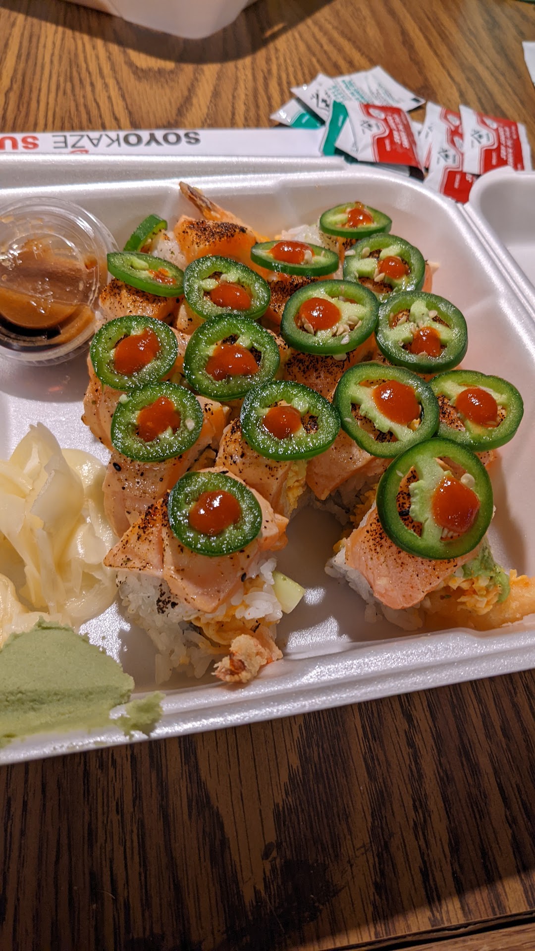 Ā Ā Ā Read moreAfter a long wait for only half of the food we wanted, we received another tables food. After we informed our waitress that this was not the food we ordered, she then took that roll to its intended tables. The roll had obviously came with a second roll, which we are thinking it was ours before realizing no one order the other roll. I can't believe that she offered an obviously disturbed and touched roll to another table. The following 2 rounds consisted of us reordering rolls that never made it to our table and fending off other tables rolls. What really set the atmosphere was the pilot of the new show Blood Drive on the TVs in the dinning area. Nothing like graphic gore and sex scenes to go with other tables sushi, all followed by a water show from a pitcher of water on one of our table members by the waitress. I wouldn't recommend this...