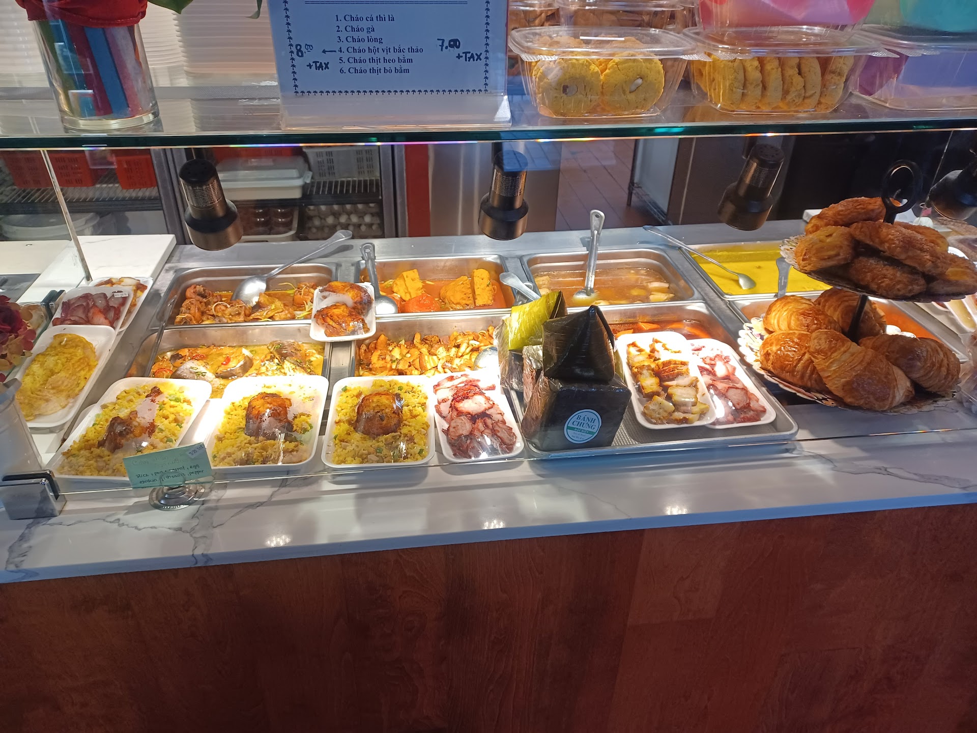 Probably the best baguette out of the countless banh mi places I have been to. Light and crunchy on the outside without being too hard to cut your palate. The inside is light and with a good chew. They put too much meat inside the sandwiches though and the fillings are not that good. The meat fillings are overly salted and sauced. This place has the potential to be 5 stars if the meat fillings would be improved. Everything is better with eggs on it, and they have stacks of egg crates behind the counter. This place is worth a stop for the...