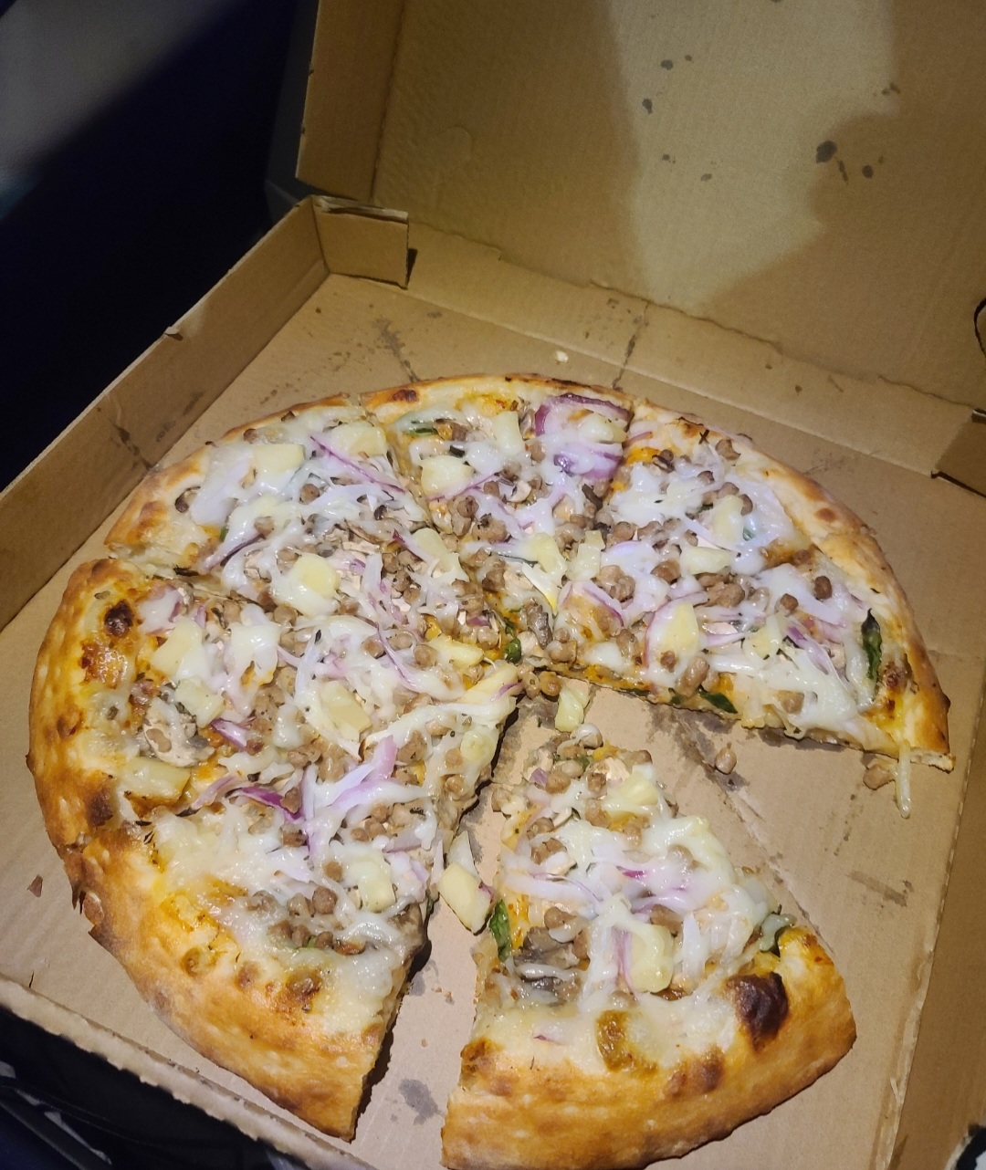 We indulged in their thick crust âVeggie Delightâ which boasted a tantalizing combination of red sauce, fresh tomatoes, onions, bell peppers, and delectably melted cheese. Each bite was a symphony of flavors, and both my wife and I were beyond impressed.