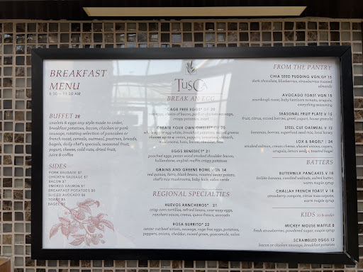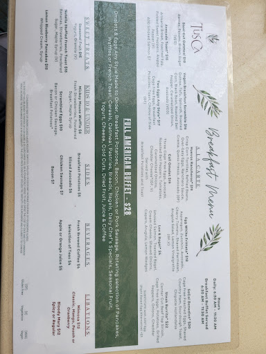 Had a good breakfast buffet at TusCA. However, Mickey Waffles are on the kids menu and our table ordered 2 orders as we are big fans of Mickey Waffles. The picture they use to promote the waffles look like legitimate Mickey waffles like you would get at any real Disney hotel. It was very deceiving that it was NOT what we received. So Mickey Waffles fans looking for the real thing, you'll need to go elsewhere. See pictures for reference. However we did find the waffle good. The breakfast buffet was nice. Bacon was good, nice assortment of pastries, fruit, eggs, potatoes, and omletes made to order. Would definitely...
