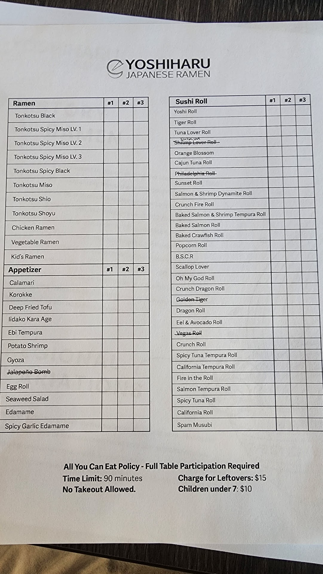 Read moreWent for an early dinner on Tuesday. I was surprised to find a brand new AYCE menu option at the Garden Grove location. It is $24 and available all day. There is a lot of ramen, appetizers and sushi rolls to choose from.