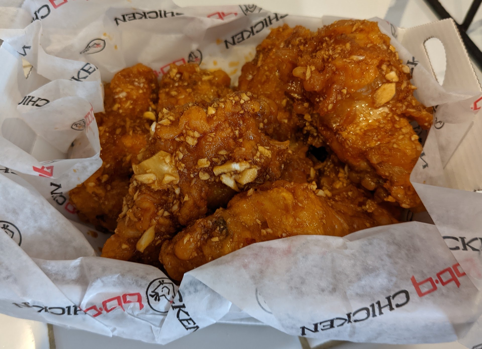 Read moreCraving Korean fried chicken? This is the best you'll find in LA, hands down. I waited to write this after a year, and about 12 orders have been done just to be sure. So unless you are a specifically Koreatown lover, this location in Gardena is fantastic and ideally placed for the SouthBay natives. My kids like fried chicken, but every once in a while, the family craves the extra crispy and savory taste of honey garlic, gang em style, or just OG. The fries are great, and the kimchi fried rice is a treat. I always go wings with bone or a half and half whole chicken for a great combo of flavors. I never tried boneless, and honestly, I never will. Not our style.