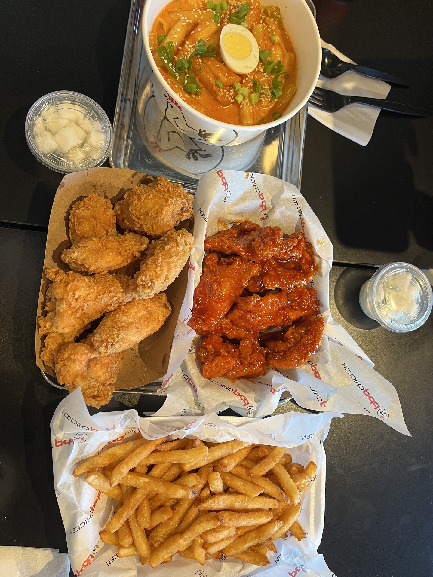 Read moreCraving Korean fried chicken? This is the best you'll find in LA, hands down. I waited to write this after a year, and about 12 orders have been done just to be sure. So unless you are a specifically Koreatown lover, this location in Gardena is fantastic and ideally placed for the SouthBay natives. My kids like fried chicken, but every once in a while, the family craves the extra crispy and savory taste of honey garlic, gang em style, or just OG. The fries are great, and the kimchi fried rice is a treat. I always go wings with bone or a half and half whole chicken for a great combo of flavors. I never tried boneless, and honestly, I never will. Not our style.