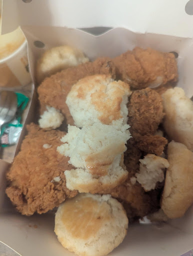 I gave up and basically just ordered what they had basking in the heat lamp maybe it was cooked a few minutes ago, lo' and behold it was the same as last time. Dry chicken with a chewy burnt acrid tasting crust that sticks to your teeth, gross. And the Biscuits were chewy hockey pucks. That's it, I'm done! The Customer Service here is absolute garbage, I've reported to corporate about this annoying experience and never coming to this...