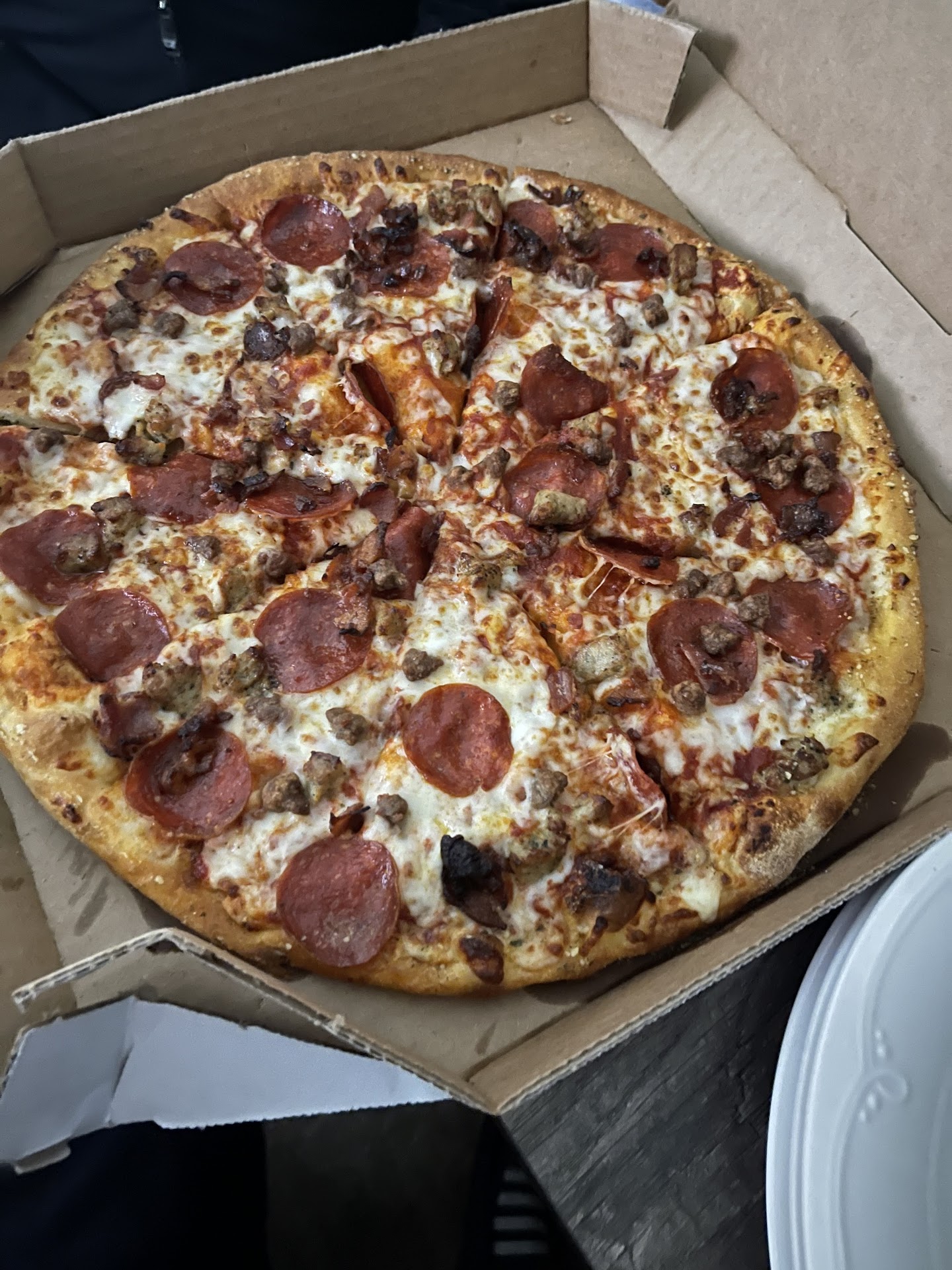 And the pizza doesnât even look ok. It looks like it was made 2 hours ago. Cheese on top is completely dried out and itâs tough as hell. Flip it over and the crust feels like dried out cardboard. My grandmother (who wanted to splurge on pizza for the holiday) couldnât even finish her piece because it was so tough.