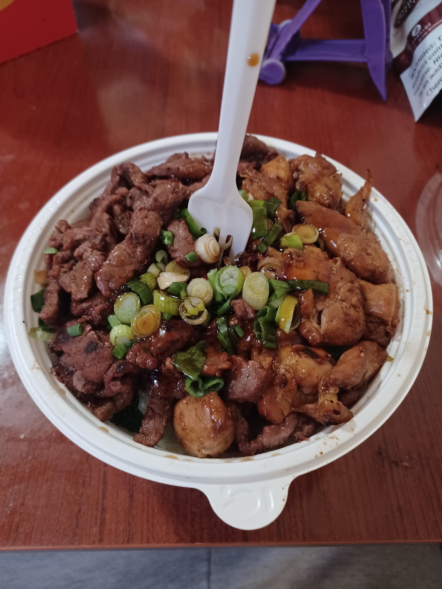 Read moreThe white meat only chicken bowl, without any veggies and on white rice is always superb. I take it home and chop the chick's up really small with scissors, in a second bowl, then move half of the rice and chicken into both bowls (both need airtight lids), then heat up one bowl to eating temp. Finally, mix in three Magic Sauce cups.