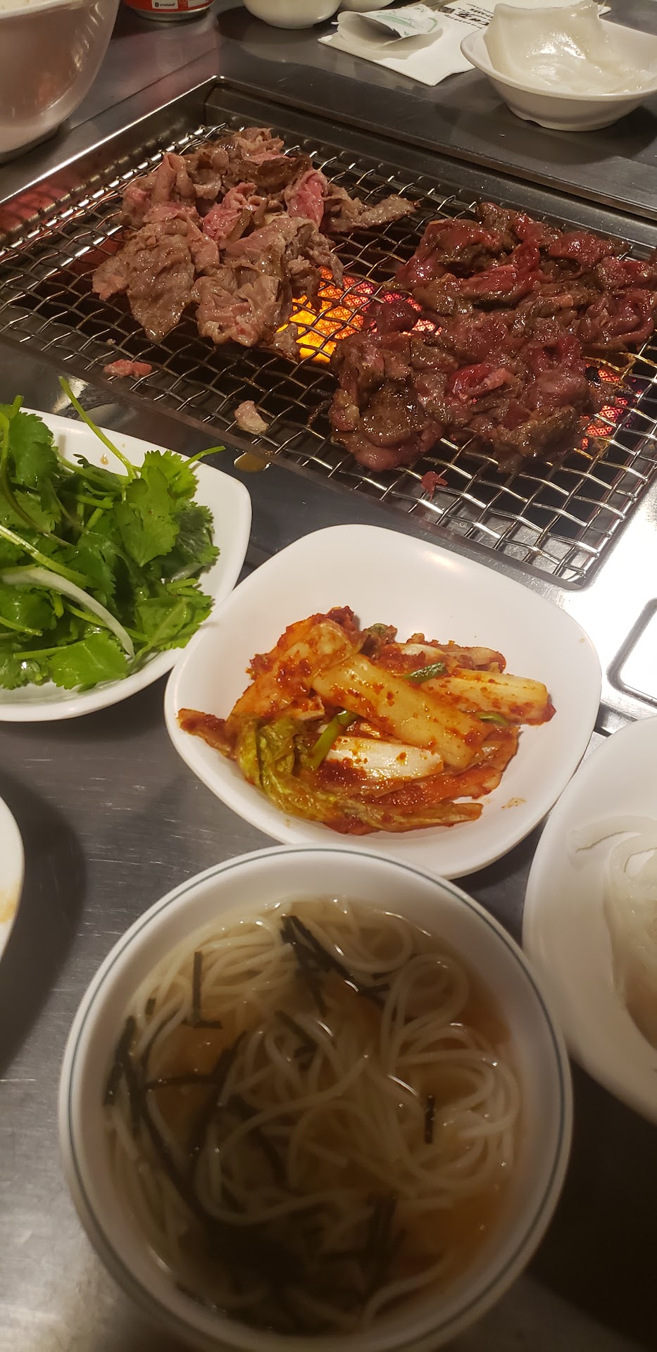 Read more1st time here for daughters birthday. Small parking lot. We get by the door, someone greets us outside with mask and tells us to go in. They did not ask for vax card. We were not sure if they seat us or we find our own table. Plastic thin dividers were hanging from ceiling to separate customers. Very small in the inside. Finally got a table. No chairs only stools you sit on. No cushions. If you have back issues this is not the place for you. Table low, stools low and while sitting my legs fell asleep. They start your grill, ask about drinks. Didnt cart kids(26 and 20yrs) All you can eat is $31 a person. We ordered our meat (3). Small side dishes and tasted good. Meat comes on a small plate( like a gravy boat no handle and flat, or butter dish). Not enough for 3 people. We had to keep waving the server to come give more meat. Taste of meat was good for bulgogi. Pork belly, no season but we put sauce and salt. I just wish they would come and give more sides, more meat without asking. Will we be back, dont think so. Why, due to their stool my back will be in more pain. $123 dollars for bill, an a server had the nerve to ask for more tips after we paid. Um, to me this wasnt tip worthy. I just feel you have to go far and beyond as you serve. Sorry. But my...