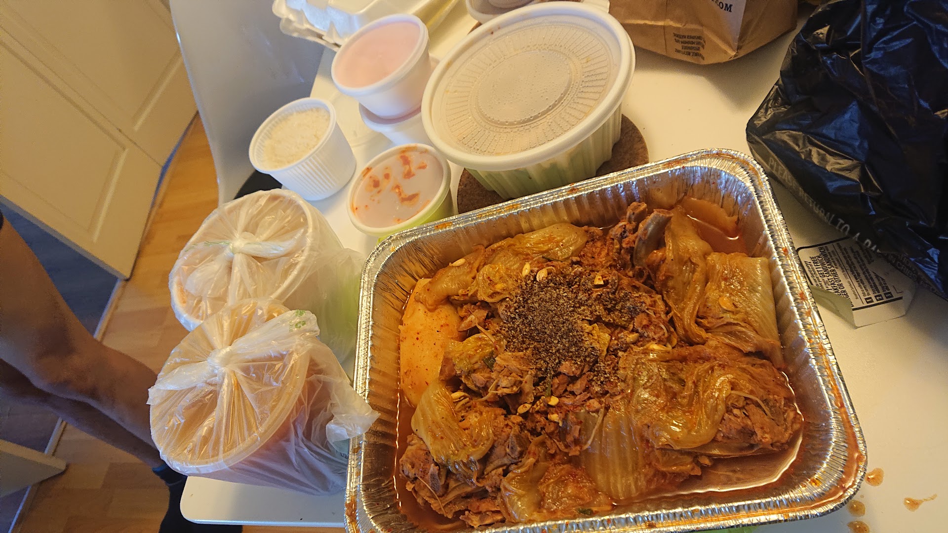 Ok my last review still stands but we need to talk about how the "small" or "not large" pork neck stew I got was a catering tray. Look at it! Those containers to the left were 32 oz deli containers that now look tiny. Was this a mistake? Did I win the stew lottery? I ate for a week! And it was absolutely delicious! I felt like I got the world's best deal combined with the very nice ladies who work there. They even had tables set up at the door so I didn't have to go in. Covid safe!