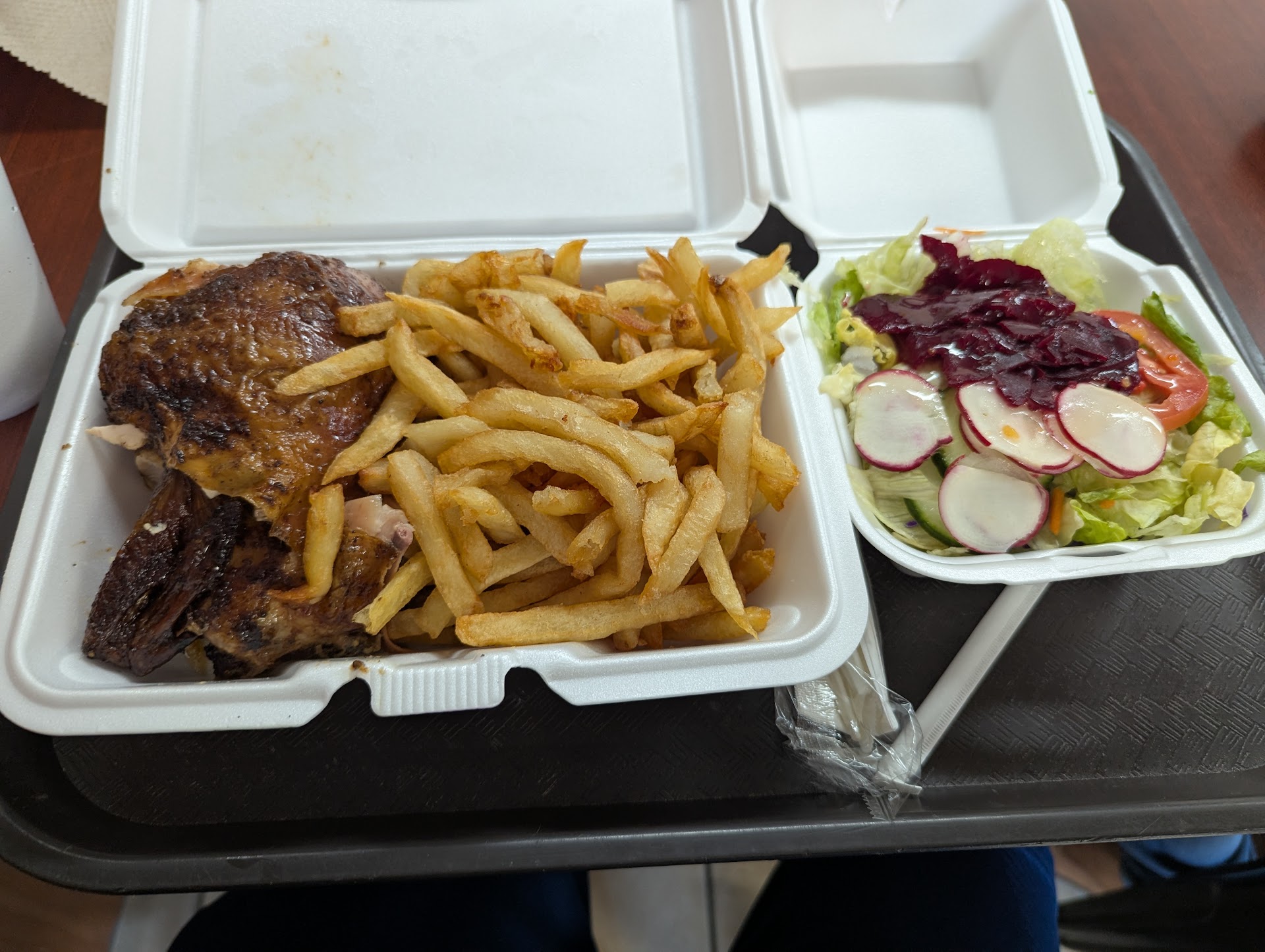 Read moreI'm a big fan of the food, but not the manager. They lady that took my order recommended that I get a whole chicken with two sides instead of a 1/2 chicken with sides because the whole chicken came with larger sizes and I agreed. Unfortunately, I was charged on my debit card for a 1/2 chicken with two medium sized (that wouldn't work for a family of 4). They brought this situation to the managers attention, but he was completely rude. I felt embarrassed and I felt insulted. He said that it was my error because they read the order back to us twice (which she did not) and wanted to swipe my debit card again for app. $1.26+a fee because it was under $10. I didn't think that was fair because it was their error. He smugged me off and ask if I expected him to give it to me for free. I shouldn't be charged again. I should not be charged an additional fee. I work too hard (even on my off days from my primary job) to ask for a free hand out. I graduate this Saturday and was just speaking with the cashier about them catering for my guess afterwards, what a...