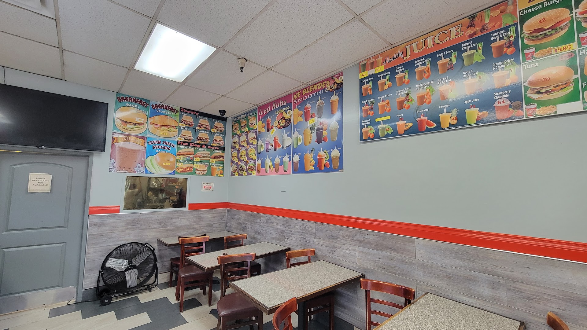 I like that they are open 24 hours, which was a surprise. They don't seem to have a restroom. They have some tables but the place doesn't seem inviting.
