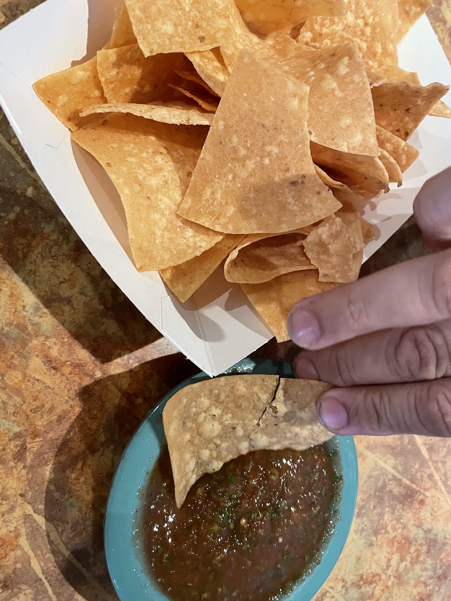 Strike 1:- Wait time took FOREVER. It was Halloween, but it wasn't packed and it took what seemed like forever to order, get our food, get our check and get out. The chip and salsa was appetizing but still we spent more time waiting on our waiter than anything else. I can see why they "burnt the tortilla" they take too got dang long.