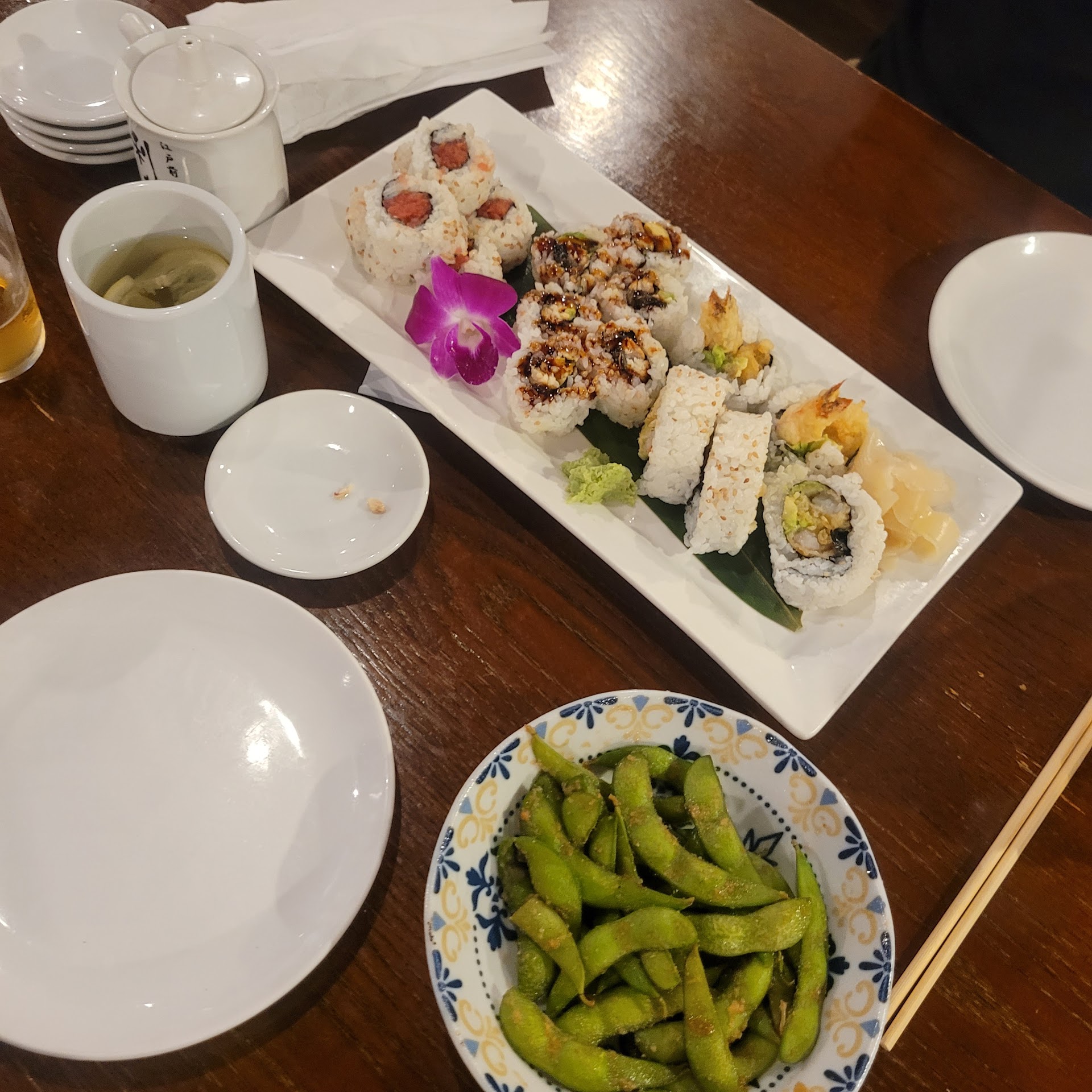 Read moreThis was a great spot to get some sushi 🍣. I'm still new to the area, so it was awesome to see this sushi spot and a ramen spot next door. Both were popular with plenty of people enjoying meals there. I was seated quickly and given a sushi menu in which you write how many rolls you want and a regular menu to see what dinner plates and appetizers they had. I ordered miso soup and hot tea while my boyfriend ordered Sapporo large and garlic edamame for us to share. They even gave small glasses to share the drinks. Lastly, we ordered 3 different rolls. Spicy tuna, spicy salmon, and shrimp tempera 🍤. We are definitely returning! Even seeing the different plates other patrons received inspire is to try...