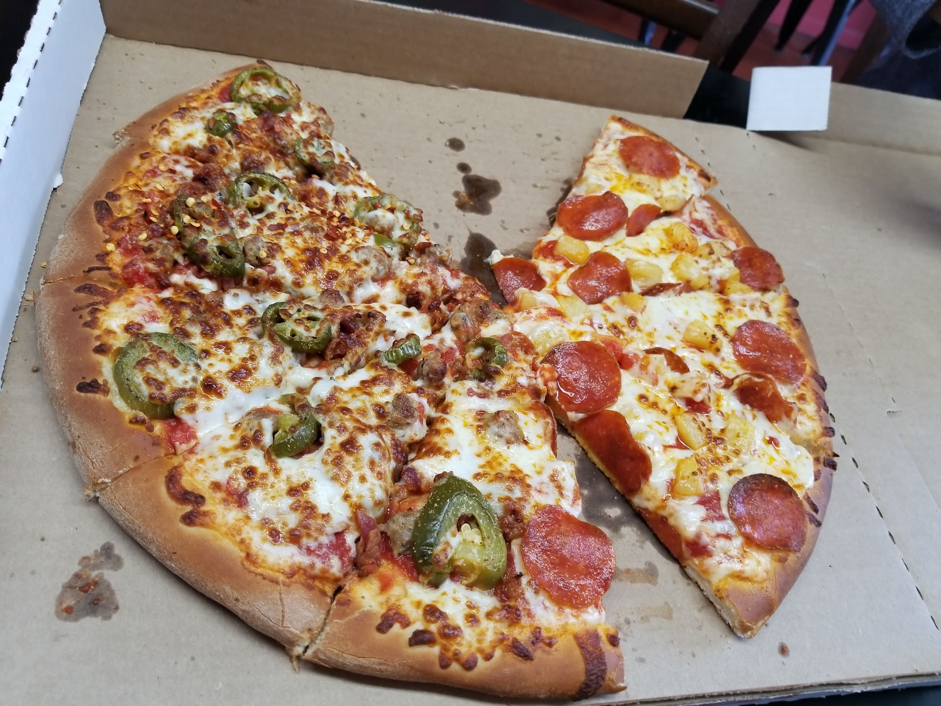 Honestly I have to be very honest it was my and my friends first time ever at this place and we both got pizzas I got a personal. Anyway s our total for a large deluxe and Hawaiian personal pizzas was $28 bucks. Now that is pretty pricey but I figured it's worth it I look at the reviews and saw it had a few good reviews. Well let me tell you this was horrible I don't mean to sound mean verse my pizza the door was soft and the toppings were like old and I just said I hated my pizza and my friends hers had a lot of onions like barely any pepperoni and the bell peppers were hard and crunchy you know it was too much money for such low quality food. I'll...