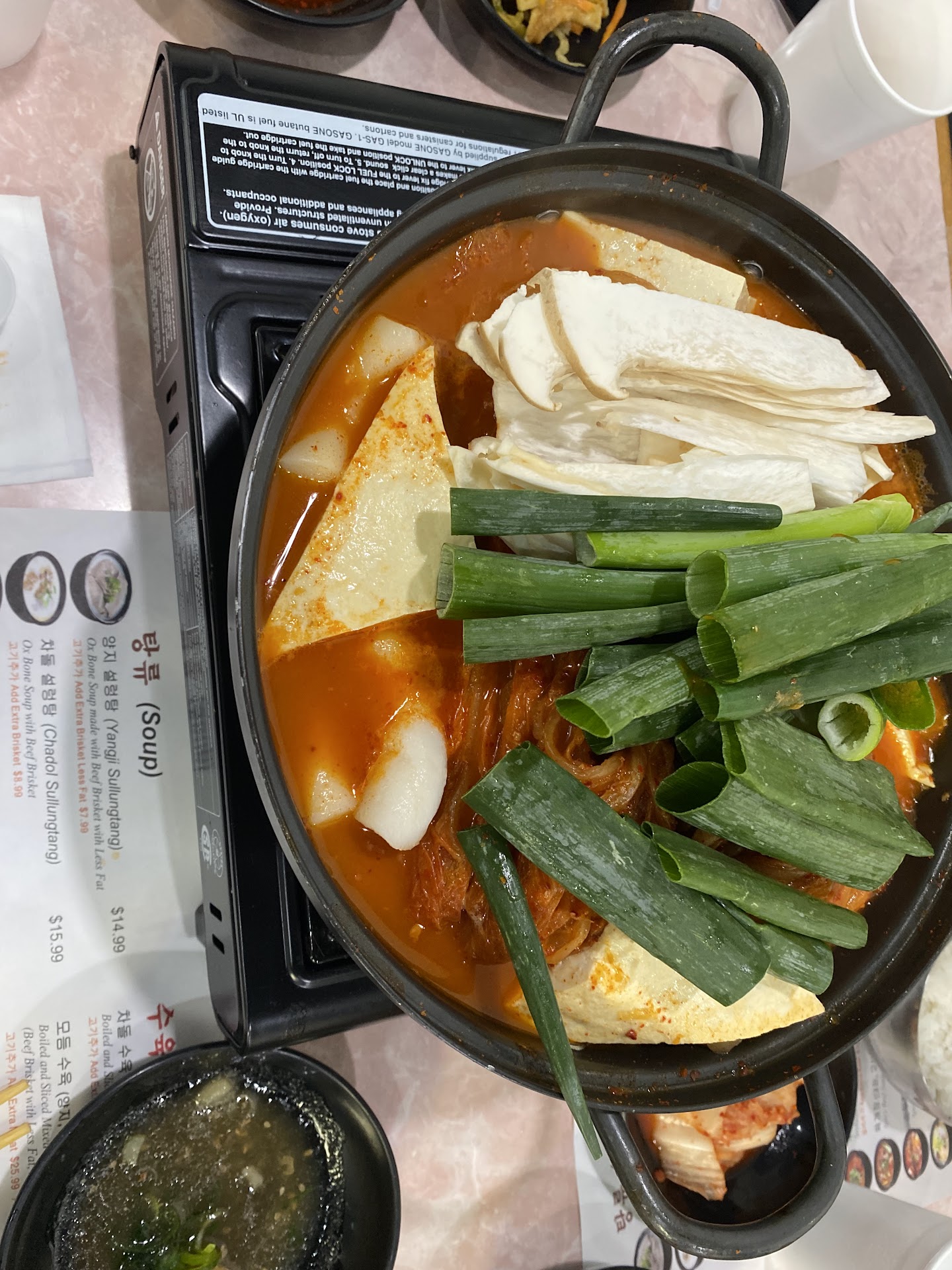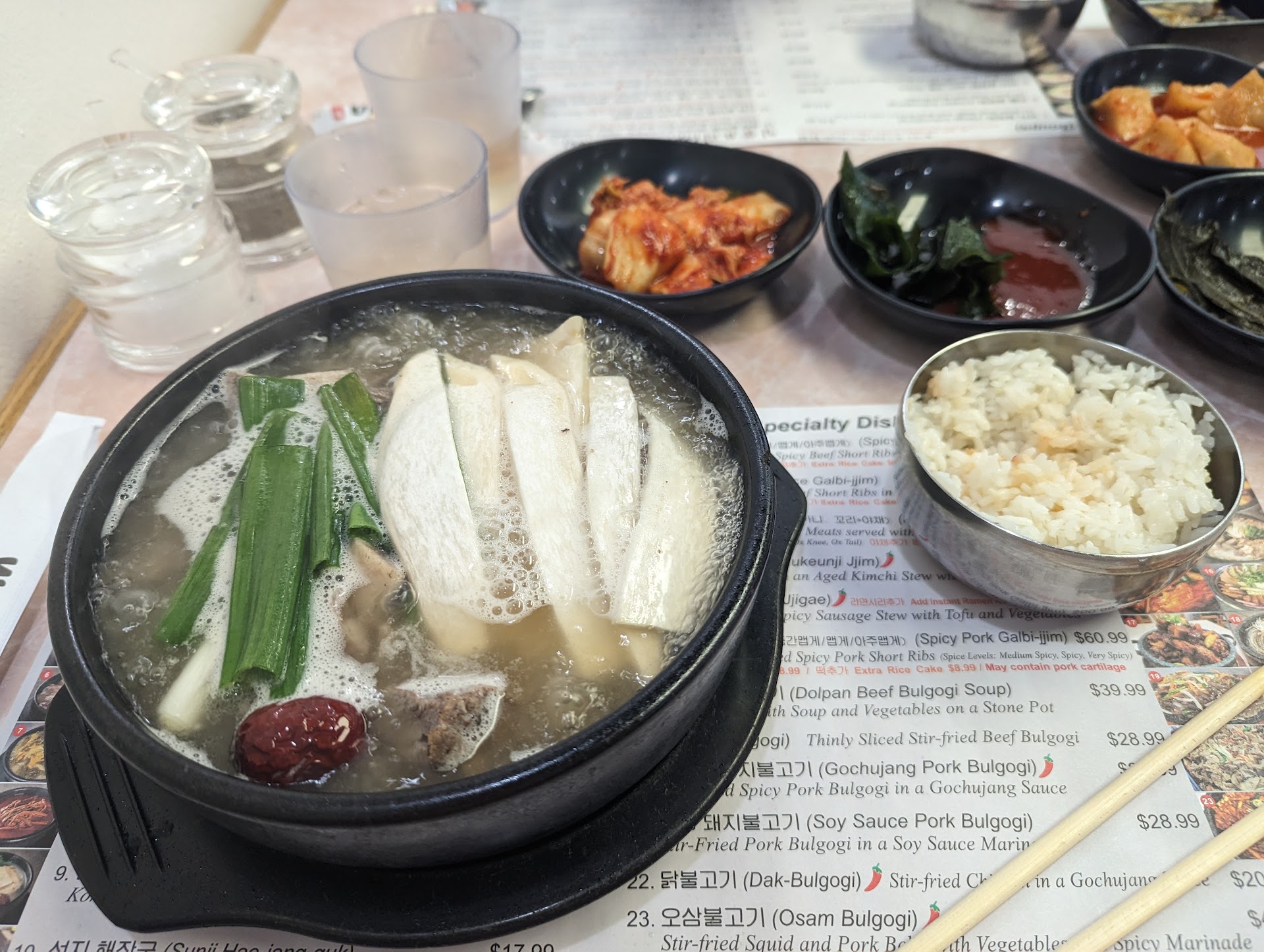 Yangi Sullungtung - ox bone soup made with beef brisket w/ less fat. This is their specialty. The broth itself was very clean. I forgot the exact name of the oil (lol oops) that I added to give it more flavor. The noodles and beef brisket were cooked well.
