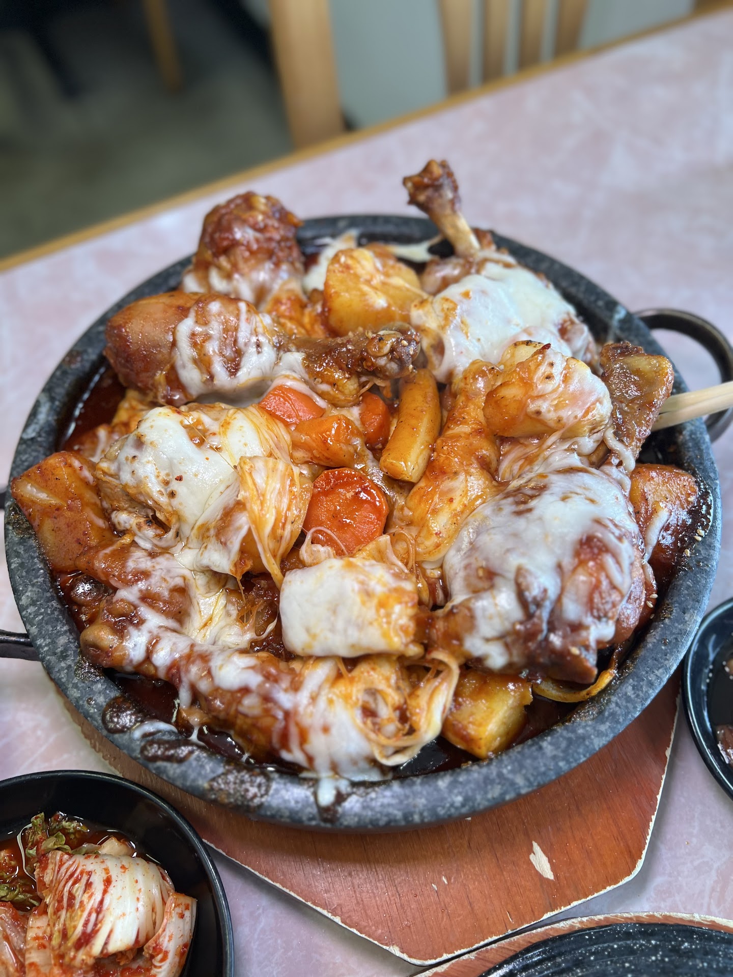 Spicy Jjimdak - braised spicy chicken drumsticks. This was HUGE! Get your cameras ready because they torch the cheese in front of you! There was a generous amount of drumsticks! The drumsticks were coated with their special spicy sauce. Definitely flavorful. It also came with lots of chopped potatoes and carrots.