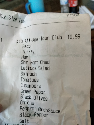 Read moreI ordered dinner online from the Gardendale location on December 16. My husband picked it up. When he got home we didn’t have a drink or chips and his sandwich was not toasted. I just told him and my daughter that I would go by on the next day for the chips and drink. I couldn’t stop by on the 17th so I went on the 18th. I walked in and explained to him and also handed him the receipt. He stared at it for a while then looked at the chip rack then at me. I explained again and he said “16th was a long time ago, today is the 18th” I explained again and he said “today not the 16th”. I said ok and tossed the receipt into the trash. Both my husband and I have supported this business but no more. I spent $38 on that day alone. I’ve only seen 3 people at the most in there when I stop by. I will not set foot in theire ever again. My husband will not and we have talked to others who say that he isn’t nice at all. I will go to the Fultondale location from now on. You have an attitude with people who are...