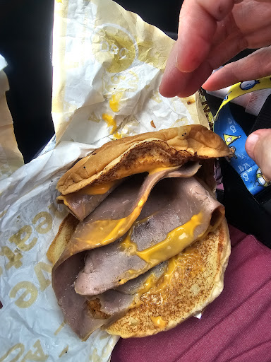 Read moreAlthough their curly fries are delicious, you will most likely have to wait for them to be cooked. The roast beef sandwiches were great when they first opened but lately they have been skimping on them (particularly the lower priced ones) and the roast beef looks/tastes old, dried out, past the hold time. The brisket sandwiches are inconsistently made (amount of meat will vary) and for the price, it should be constant and I always say no cheese/no Gouda yet they don't seem to take the request seriously. It melts in so I can't just peel it off. For the price of this sandwich, a turnover, a drink and large curly fries, I have many different options of where to eat (and may leave...
