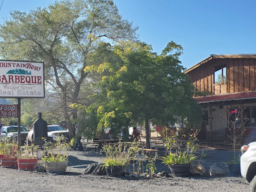 I stumbled on this place on my trip over the sonora pass. The smell drew me in from across the street. I glanced over the menu. Got a trio plate. Brisket. Pork and sausage. Fries and beans. In a to go container. The smokey flavor on the bbq sauce was my favorite thing. Brisket was a roast. Lacking. And actually hard to chew. . Pork loin was dry. I think I was kind of thinking it was going to be pulled pork, but the loin threw me off. The sausage was delicious. My fries were swimming in sauce. So ehh. The beans were their take on a Texas ranch bean. A little spicy. A little smokey. Maybe even some beer in them. Delicious. Corn bread was sweetest. If I was blind folded I would have thought it was a muffin. That being said... I would actually go back and order something else. I could tell it was just what I ordered. I would deff go back and try some chicken. Ribs or a burger. And ask for my fries and sides all separate. Great flavor on the sauce. They either make their own liquid smoke or cook their sauce on the smoker. I'm not a bbq sauce fan but I could eat this one all the time. I'm sad I didn't order better, so I'll be back. ! I love the views and atmosphere outside....