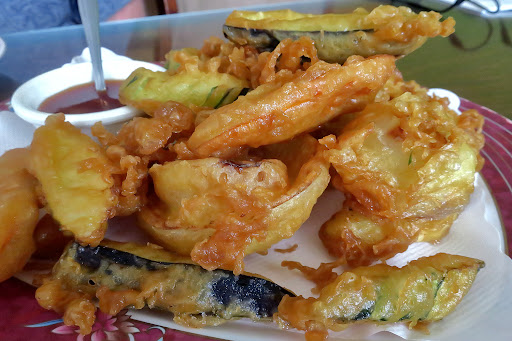 The tempura came out first. Nice big pieces of fried goodness. The pad Thai was a little weird, the noodles were very tomatoish flavored, not like a normal Pad Thai. This was more like they made it with catsup. Pass on this next time.