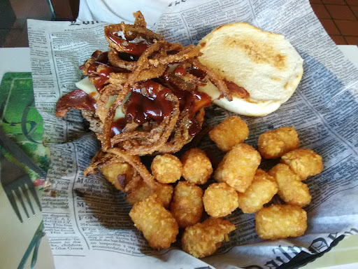 Read moreWell tonight was purchased first time here . You first walk in you don't know wether you seat yourself or wait to be seated so we just seated ourselves. Pretty busy for a Friday night.their sign outside does say help wanted for wait staff . Which could explain the long wait for food.our waitress was Adriana (sp?) Apologetic n nice for long waits but I saw wait staff behind the counter that were on their cell phones. So anyways..we ordered a Dr pepper and strawberry lemonade (which tasted great n fresh) 10 min wait for drinks. Then ordered our appetizer the BBQ chicken wings (amazing,no need for any tips to go with it) but another 20 min wait . So we were compted them for the wait. Got a bacon cheeseburger (w/ketchup,mayo,onions) and fries . delicious. And a cowboy burger(swiss cheese,BBQ sauce,fried onion strings,n bacon) with tator tots. Another 7 mins .came to bout $22. All in all def would come back or recommend for food wise.its delicious. The wait I could def do...
