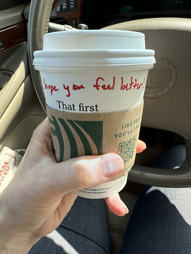 Shoutout to the Starbucks on Garfield near S. Airport⦠I work in hospice and some days can feel heavy. Today is one of those days. On top of that, I have a cold and a froggy voice so I stopped into Starbucks to get a drink to coat my throat. When I got to the pickup area, there were TWO drinks waiting for me. Confused, I asked the staff if this was correct. The man who had taken my order said, āoh yeah, thatās for you. Itās one of our teas with a little lemon and honey for your throat.ā Iām not a frequent customer and I was only in the shop for a few minutes. This man took notice of my situation, addressed me by name (I was wearing my name tag for work) and filled a need. This truly was a great customer service moment.