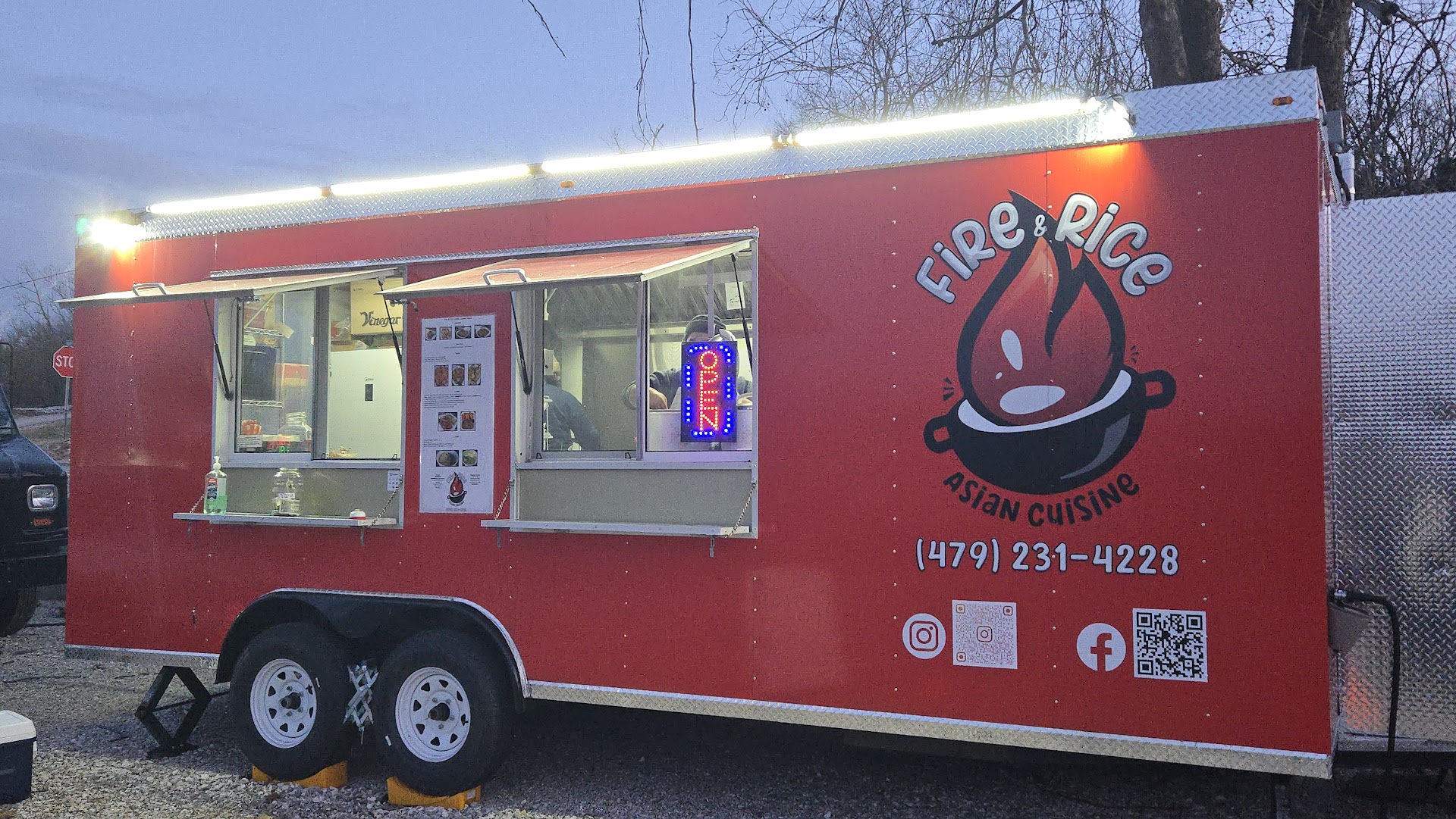 Read moreWe tried this food truck yesterday and had a great time! This food truck is ran by really kind and hardworking people that make great food. They have a wide variety of food to choose from. My favorite dish was the sesame seed mochi balls! The red bean filling was great. They are so good! The lights of the food truck parking lot are comfortably lit with a lot of parking space that is free. Fire and Rice food...