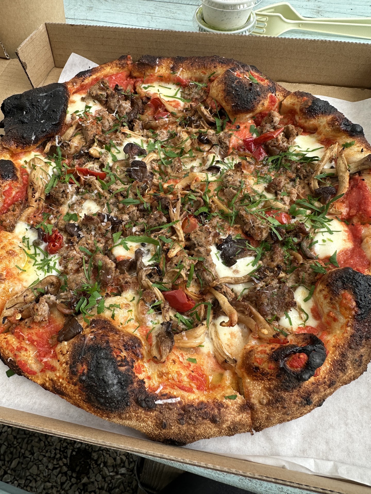 When I first drove by, I thought it said “phalanx” pizza. Passing by again, I then thought “Lorax.” Ohhhh Kay…but what piqued my interest was “wood-fired.” then I did the goog and found the name. I was bummed because I dropped my kid off at band camp on Sunday and THOUGHT I was returning the next Sunday and wouldn’t get to try it. But I actually returned on Saturday. Winning! I love pizza. My favorite food. But most places suck. I wasn’t expecting much, because we were on the coast. But when we opened the box, my hopes went up. First bite, my son and I looked at each other, eyes wide open. Damn. This is good pizza. No, GREAT pizza. I wholeheartedly recommend forbix pizza. Forskan, no, lorchox, no,…whatever it’s called, get you some! All I want is pizza made with love. Here, you have that. 5*s...