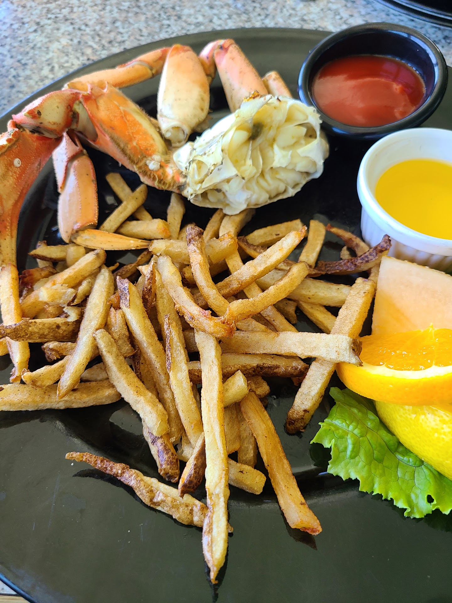 here's our experience (4 visits so far, 4 visits all good) - I'd give it 5 stars and the ONLY reason it's not 5 is because my 5 isn’t other people’s 5. We focus on food and friendly service when writing about restaurants. Not decor. So yes, based off of other reviews the decor is outdated. We first came here for lunch, husband ordered a shrimp melt and I had the oyster club. Over priced? remember you're in an area where distribution can be a hassle and if it's coming from a local source maybe the catch of the day wasn't super bountiful - you can't dictate Mother Nature or a truck getting over a mountain range and through a forest getting the fruit of the day to this area: hwy 6 or the 101, each aren't the best for a semi or truck getting into town. Anywho - we both enjoyed our lunch, veggies on my sandwich were fresh, oysters weren't fishy, husband loved his sandwich. Server was great. Friendly and attentive even though it was only them. Enjoy the view, it's amazing and if it takes a bit for your food, you're server isn't going to be an a$$hat - they're all great and hustling. Also - we've found that getting great staff in smaller towns on the coast can be hard, so it's not like they aren't hiring it's that the population is tiny and servers aren't plentiful. Second time we came was for brunch. Ok this was a toss up for omg favorite. Hubby had the waffle and I had the crab eggs Benedict. I'm at a loss for words. Crab was sweet and cooked to perfection, the hollandaise was warm and not in your face flavorful and had instagram worthy poached eggs. I think my husband enjoyed the waffle because he didn't speak and they were gone in about 8 min and he had that doofy look on his face. Fresh insane amount of fruit on the side and perfect hash browns. Not super well staffed this time either but beyond friendly girl and even though she was busy as all get up she was smiling and just a great server in general. No complaints here, we took the extra maybe 15 minutes from the not overly staffed brunch time to do things like,talk... look at the bay... ogle the sun reflecting off of said bay... you get the point. Third time we came for hubbies birthday. Obviously the first two trips weren't a deterrent. Boom! Two wait staff and yep! Had to wait 10 minutes to get seated but we hung out and looked at the historical pictures and all was well even if we were on the verge of hangry. We ordered the shrimp cocktail to start - super awesome waitress said it would take a while which was fine, we had drinks and THAT VIEW... she brought the cocktail out and explained that the shrimp were fresh, as in, the chef quick cooks then then cools them quickly and serves them. Most places have them prepared in a fridge and waiting. There is a huge difference and that extra 7 minutes was beyond worth it. And the cocktail sauce was punch your tastebuds perfect horseradish goodtimes. For our dinners we had the seafood fettuccini and the halibut Benedict (I think that's the name). Dear lord... I don't normally commit the sin of dousing fresh seafood in Alfredo sauce but each type of seafood stood out. The shrimp, the salmon, the scallops. Not drenched in crappy white sauce, the white sauce complimented the sweet flavors of each and none were over cooked or weird or chewy. The pasta was the thick not mushy awesomeness you want. The halibut was the star out of the two though. Grilled perfectly and a little bit of fresh crab on top with hollandaise. The fish was melt in your mouth buttery and the addition of just enough of the topping made me want to switch plates with the mr for a bit. The whatever the heck they did amazingness with the mashed potatoes... wow. So needless to say bday dinner was a huge success. Still bringing up said dinner once a month and reminiscing. For realz. We went for brunch another time and brought my sister from AZ because we knew she'd freak over the Benedict....