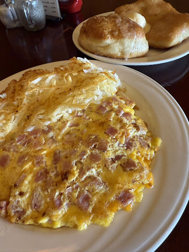 My wife got a round up platter with a rubber round steak (no one asked how she wanted it cooked...) with hash browns that were also very odd tasting. She said the eggs were good, which were made by chickens, not the employees.