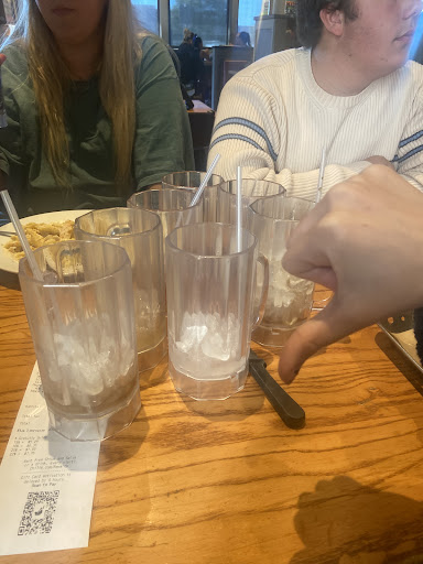 1. Took 20 min to get drinks and still some were forgotten (it’s not that difficult to get waters) 2. Ordered a salad and side of fries. I never got them. Still charged for them. 3. Olga (our waiter) only came to our table prob 3 times and walked away from us while we were talking to her. Also got a little attitude from her. 4. Wrong meal was brought out so they had to make it while everyone else had there food. 5. Up-charged on every single check. Had to fix all of them. 6. Dishes and chips were neatly stacked on our table and she never grabbed them even though our whole table was cluttered. 7. I am writing this right now still waiting for a water I asked for 20 min ago. 8. I blame olga