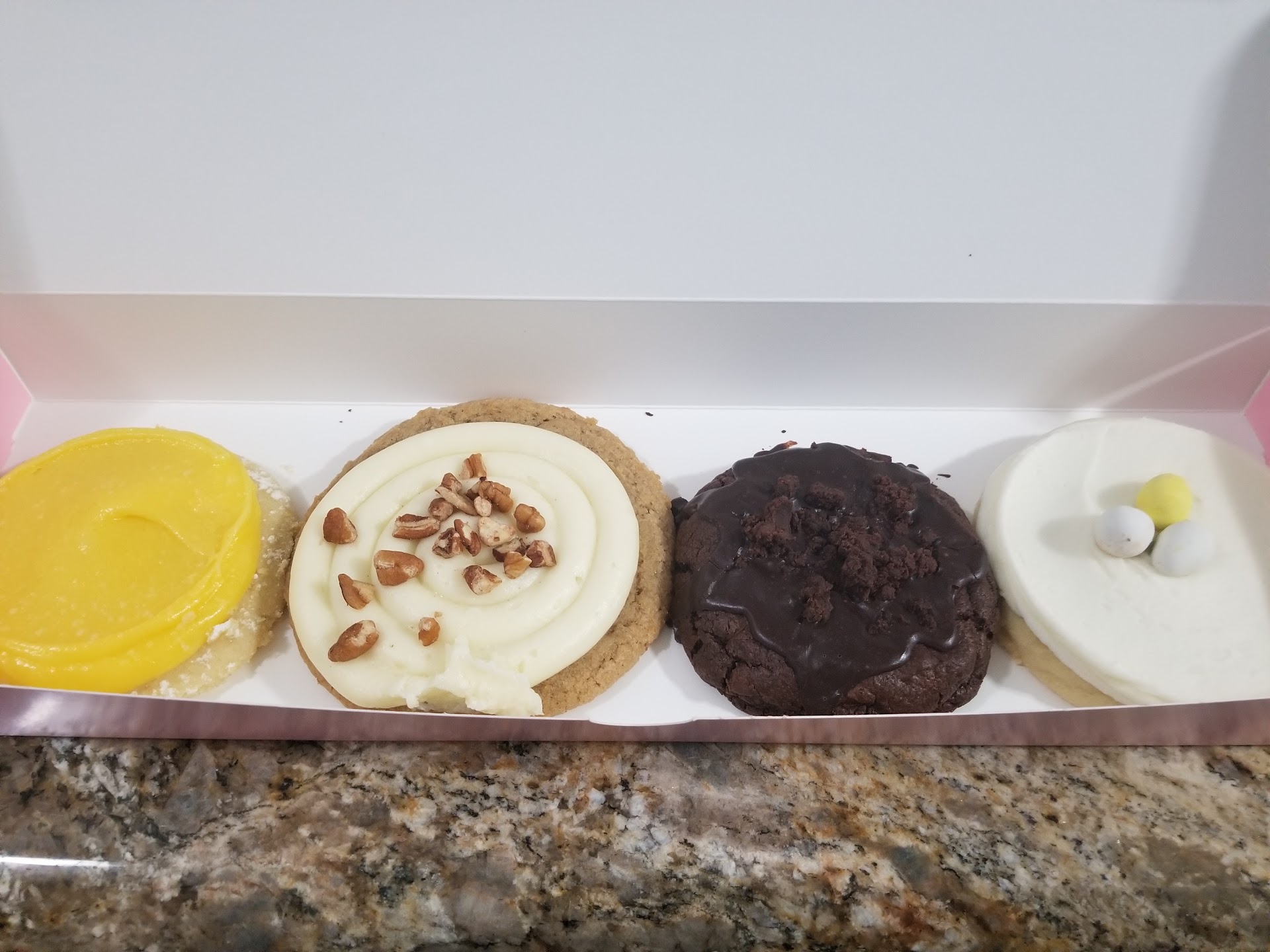 Ā Ā Ā Read moreLet me start by saying the cookies are delicious!!! I was super excited to get these cookies as a surprise for my wife. I selected the option that said "gift wrap" with I love you. All I got was a I love you sticker on the box. The size of a quarter. That's would have been no big deal, but I ordered my cookies and text "here" for curbside and I sat there for almost 20 minutes. I manage restaurants, and they looked kinda busy so I tried to be patient. I was parked in the spot that had a sign that said curbside for crumble. I know the employees could see my car parked in the spot but no one came out to ask if I was waiting on somthing. Many employees walked past my car for others people order's. I had to get out and go inside and let them know I was waiting for an order. They said they never got the message saying I was here. It then took another ten minutes to get my order. No apology for the long wait, there was zero attempt to recover my experience, just excuses to why they were not getting the "here" message. You guys sell and amazing product VERY expensive for what it is. When you charge this much for only 4 cookies you have to go above and beyond with the customer service or the cookies aren't...