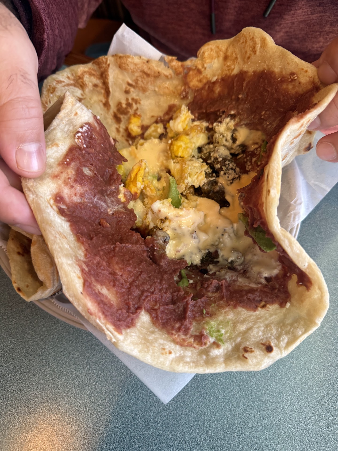 I ordered the breakfast burrito and pointed to a picture they had plastered outside their restaurant. My order didnât have any eggs, when I returned to let them know, the young cook swears she did but I opened the burrito to show the owner..only cheese, rice, and beans⊠the cook finally made it with frustration and an attitude.