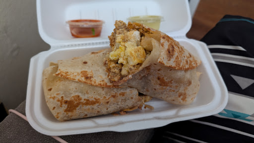 When I tried to place my order, a Breakfast Burrito with egg, chorizo and potato, I was met with the standard price - $6.69 as listed on their menu - AND a "Custom Amount" for three dollars. When I asked if the addition of potatoes was really $3, it was dropped to $2. Notably, there is nothing on their menu letting you know how much substitutions or additions are so this was an extra fun surprise. And, in talking to the person charging me, it was chalked up to a misunderstanding, that it was just extra. Rather than argue or complain, I just paid it because I was hungry.