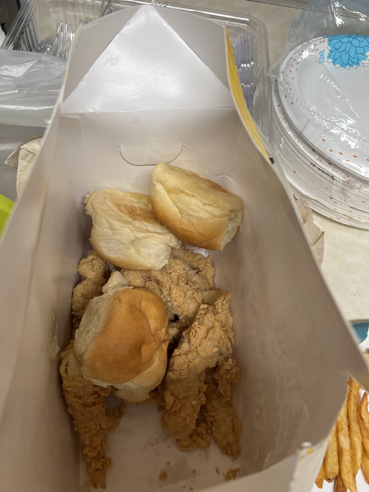 Read moreLet me just say customer service these days does not exist and it doesnât exist at this place at all! I placed an order in the lobby at 2:58 pm order number 237 and when I walked in there was not even a word spoken to me. I stood at the register waiting to be acknowledged and the young lady Walnisha just looked at me and didnât even say hi or be with you in a sec. Nothing. I thought about leaving but I spent a lot of energy trying to get on the parking lot because it was during school letting out and here were kids everywhere so I stayed. After awhile she finally walks over to me no smile no welcoming attitude almost as if she didnât want to be there. She then says take out or dine in.By this time Iâm upset. I place my order for a 6 piece with fry and drink and a extra side of the corn nuggets. I get my order and when I opened the bag they were 6 of the smallest tenders I had ever seen. I didnât even have a full order of fries and the ones I had were hard. I didnât receive my roll and the chicken was dry. Iâm going to say this my family owns a restaurant in Garland and I know what customer service is! Now that I think of it I donât even think there was an adult there to even monitor these young ladies. Business owners these days are just letting a bunch of young disrespectful kids run their business and run it into the ground. I always wonder why the place is dead and hardly any customers now I know and...