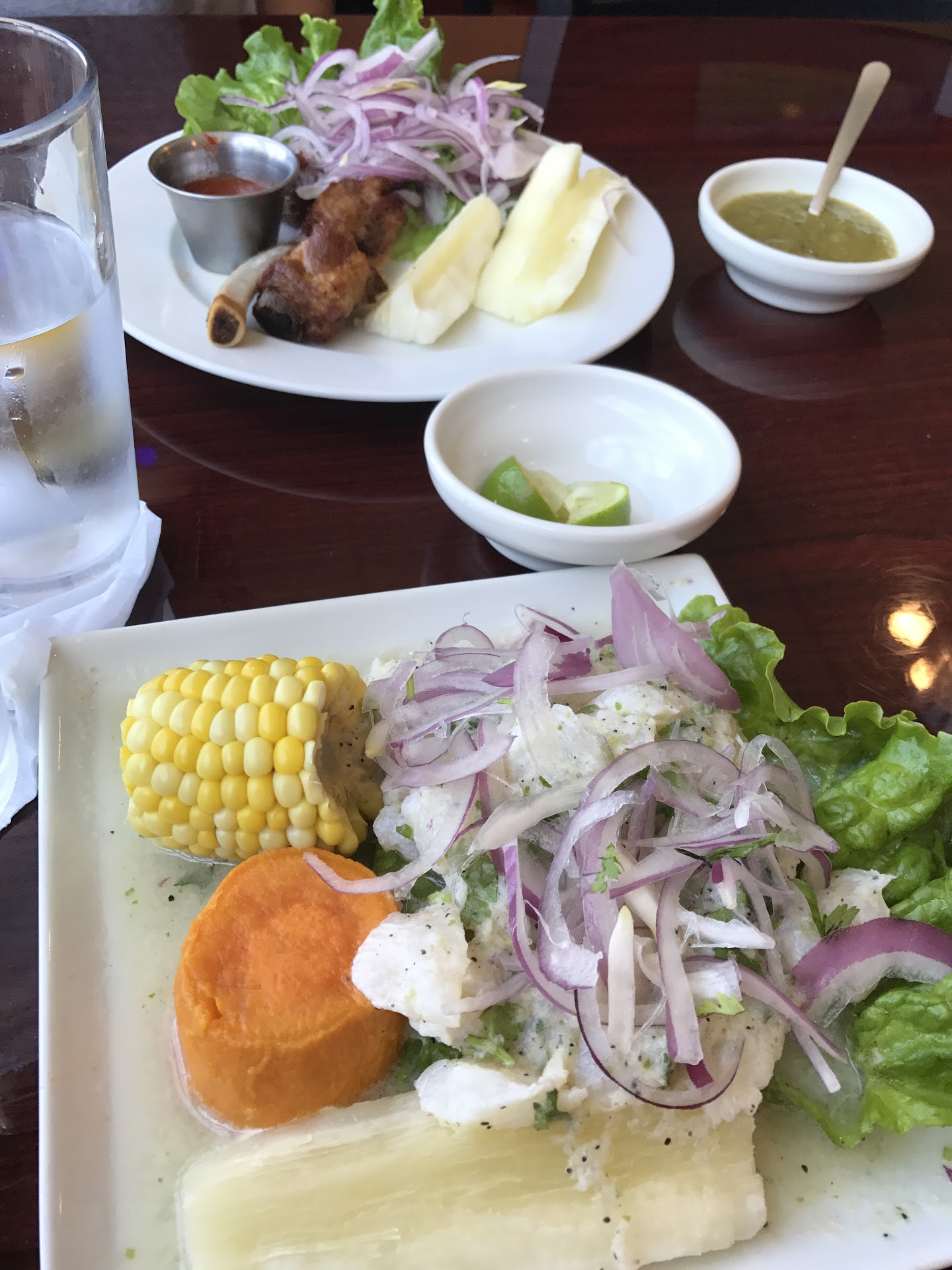 Read moreI really had high hopes for this visit. I have had Peruvian food before and liked it, And I was excited to see ceviche on the menu. The waiter never mentioned that it was different than the typical ceviche of shrimp in sauce, but that's ok. When I received a plate of dry fish, that was ok, too. After all, I'm a huge sushi fan. What I didn't like is taking one bite and having a fish spine poke my cheek. I put that down and there were scales on it still. The pieces smelled rotten and were rubbery. We called the waiter over and politely said that the ceviche had some issues and was not edible. The waitress said you get the qualify of what you order, and it wasn't her fault I ordered ceviche. Well. We asked for a manager. 10 minutes later (we were the only guests--should've been a sign), the manager told us regardless if the fish is bad, I should've known how to order better, and they weren't taking it off the ticket--knowing I took 4 bites of 4 pieces and spit all 4 out. I was trying to be understanding, tried to make it work, but after that...shocking. Terrible service, terrible food, terrible stench, terribly uncomfortable seating/music. Have I mentioned the food was rotting? And they not only didn't apologize, but insisted I pay for the uneaten rotten food? Yeah.