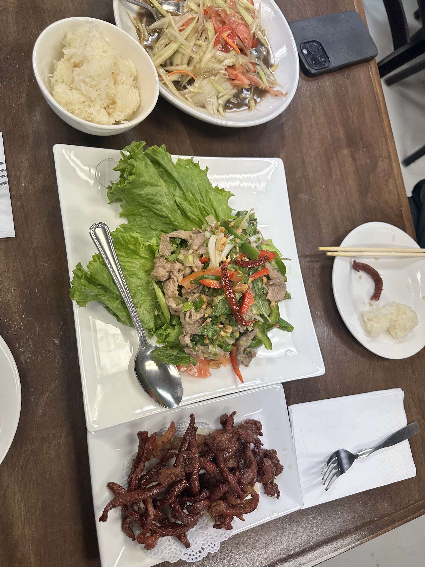 Read moreHoly Khao absolutely delivered one of the most satisfying and flavorful meals I’ve had in a while. Everything was fresh, vibrant, and packed with bold Lao flavors that hit all the right notes. We started with the papaya salad, which was bright, tangy, and just the right level of heat — super refreshing. The fried beef jerky was a standout: crispy on the outside, tender inside, and perfect for dipping in the sauce it came with. The Nam Khao was hands-down one of my favorites — that crispy rice mixed with herbs and fermented pork? Addictive. Balanced, crunchy, and deeply savory. The khao poon chicken was comfort in a bowl — warm, coconutty, and rich, with just enough spice to keep things interesting. Every bite was soothing and satisfying. For dessert, the mango sticky rice was a classic done right — sweet, soft mango paired with perfectly chewy rice and rich coconut cream. But the surprise favorite was the khao lod song — cold, creamy, and lightly sweet, with a great texture from the pandan noodles. A perfect finish. Staff were warm and welcoming, and the casual vibe made the experience feel both relaxed and authentic. I’ll definitely be back to try more — this place is a hidden gem for Lao...