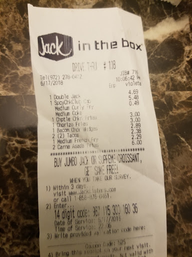 Read moreI went into this Jack in the Box at about 10:30 this morning. First I went to the restroom, the restroom floor was wet and smelled like it had been mopped with a bucket of urine, also both trash cans were full. The sign on the bathroom wall stated that the restroom is checked every hour, I beg to differ. I was the only customer inside the restaurant at that time, the rest were all drive-thru. So not sure how many customers they had, in the hour prior to my arrival, that peed on the floor and filled both trash cans.