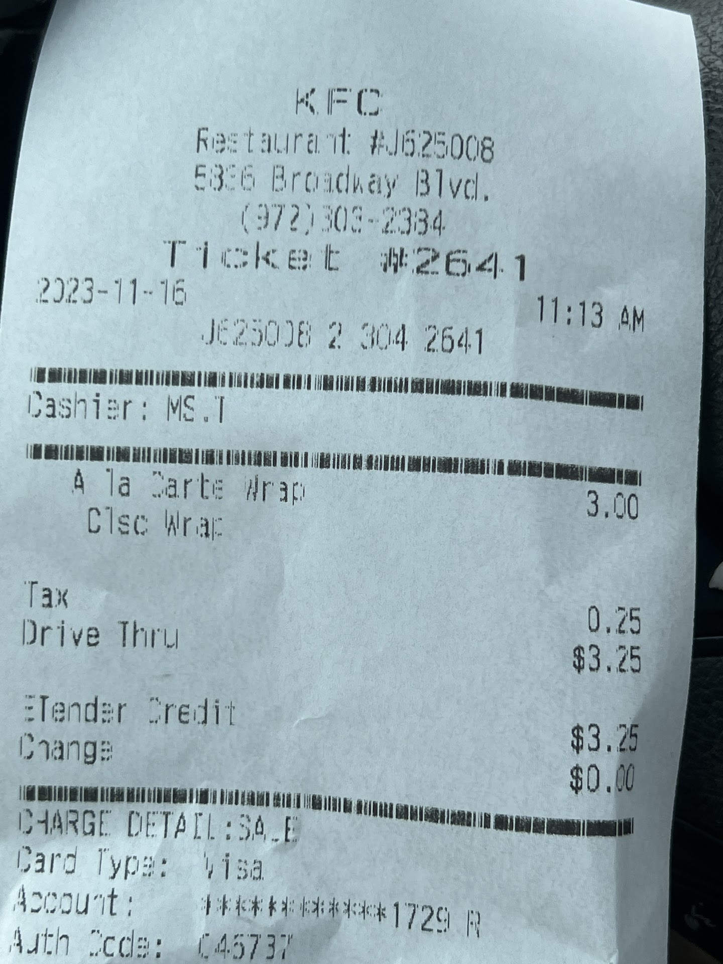 Read moreHorrible experience! Ordered a family meal through the drive thru. I got home and all the chicken was burnt, hard, and not consumable. Called the location and was told I should have checked it prior to leaving the drive thru, and because I have taken possession of it off property they couldn't give me my money back, roughly $60. I've never hear of this, furthermore the food was so hard i wouldn't give it to a dog. I offered to bring ALL the food back (making a 2nd trip) but I would want my money back. They refused that option and kept me on the phone for 50 minutes with who I was told was the manager-Sofia, very rude and unprofessional. While on the phone, my husband called corporate who took a report on the franchise store, apologized, and sent a gift card to try an alternative location. The Broadway location hearing the corporate call in the background said if I drove back to the store, they would refund only the cost of the chicken, but I would have to pay for the sides. Something was better than nothing although my family needed more for dinner than just sides- potatoes, Mac and cheese, and biscuits (cold ones at that). Upon arriving at the store the staff was rude, unprofessional, and an extremely unclean store. We will never return to this location. Further I don't think they disposed of the food... looks like they were going to re-serve it... health code may need to make a stop here. I suggest Churches Chicken! Wayyy better food, pricing, and those honey biscuits!...