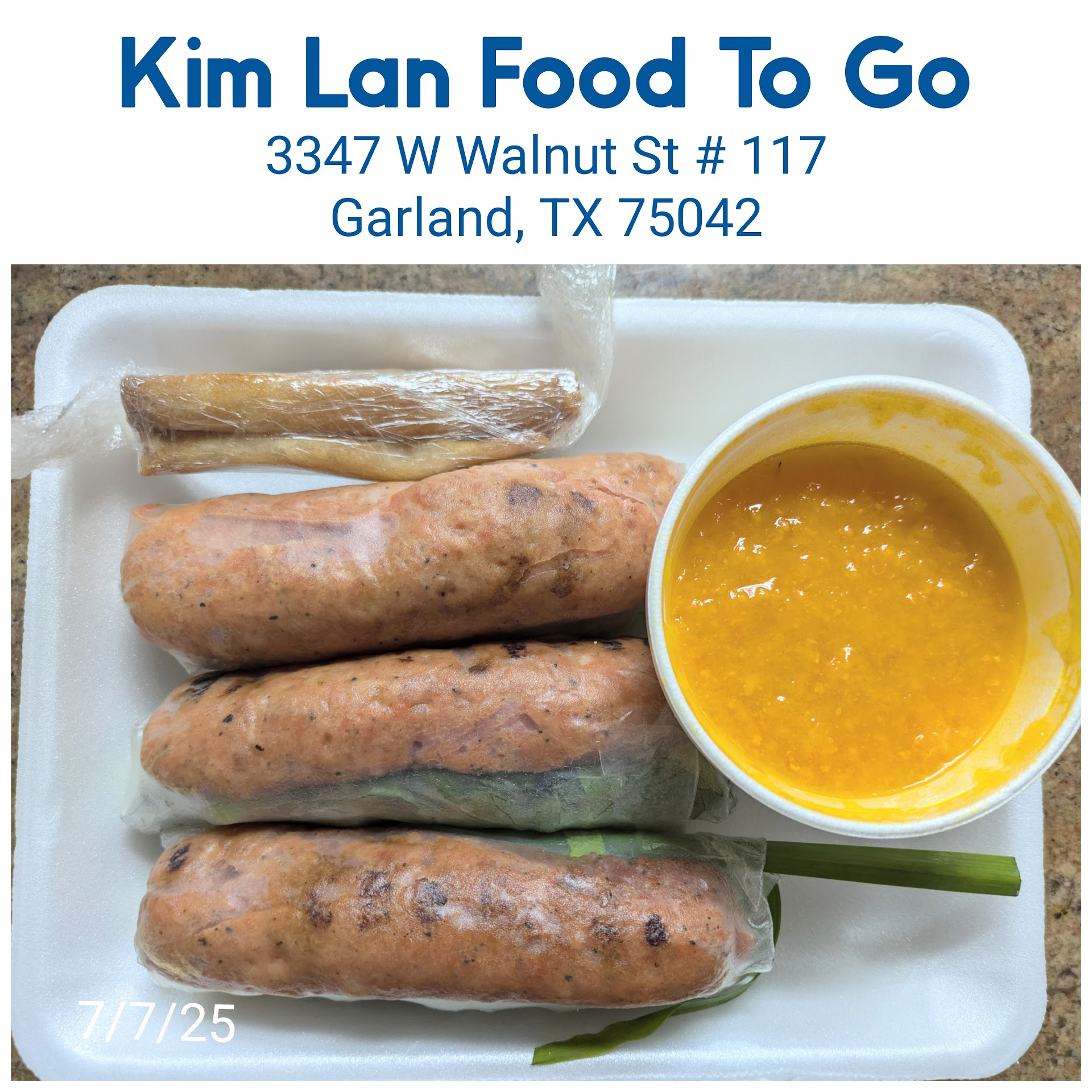 Read moreKim Lan Food to Go 7/7/25: This is where I go for Vietnamese nêm nướng. The bánh xèo here is crunchy thin with a decent amount of pork and shrimp too.